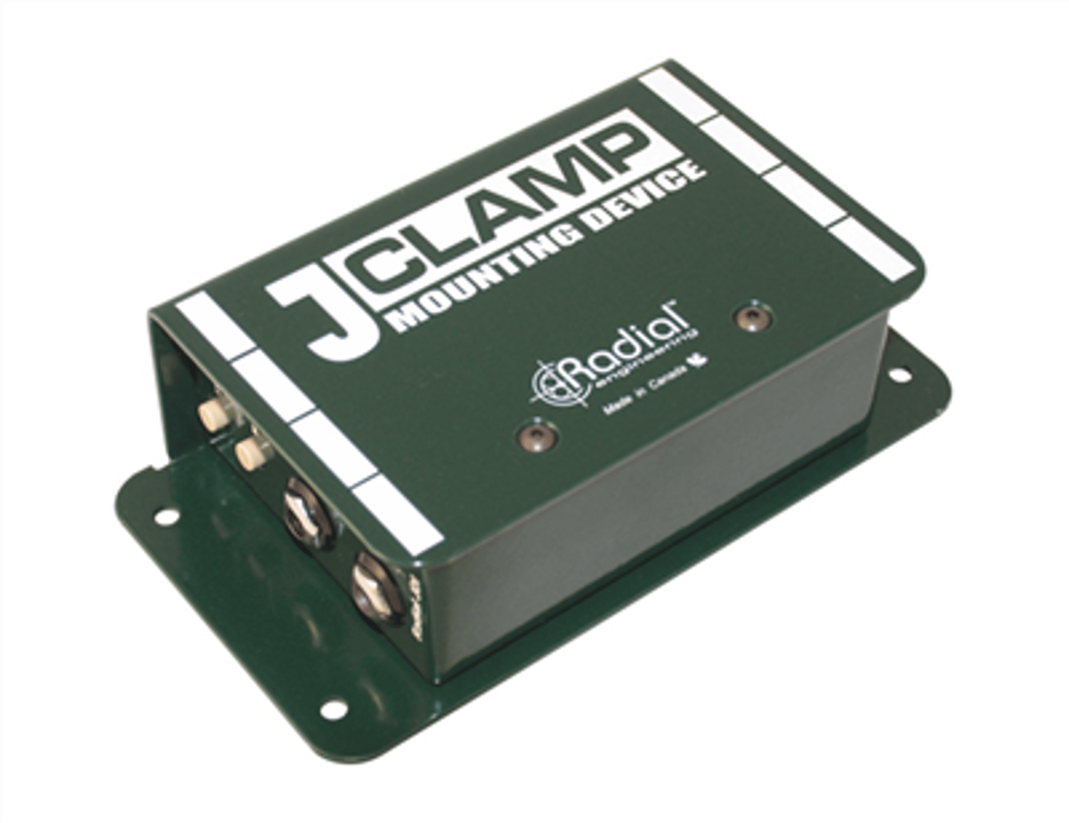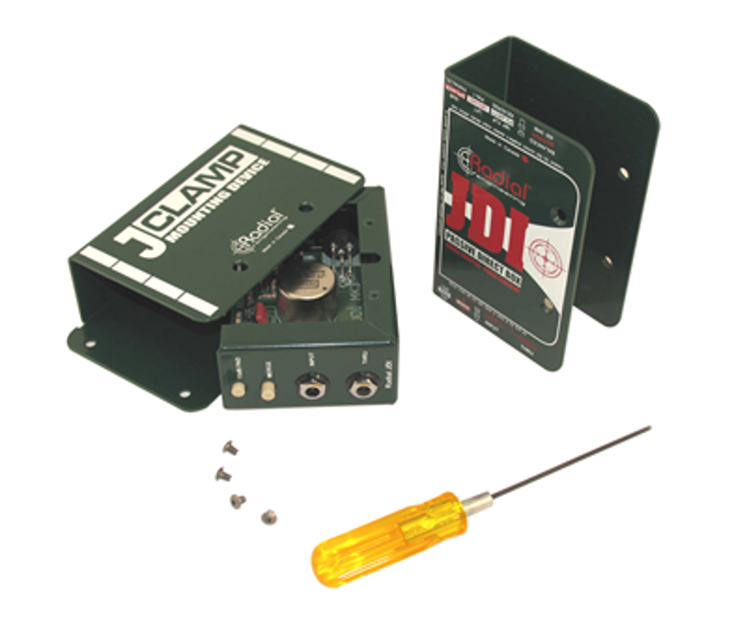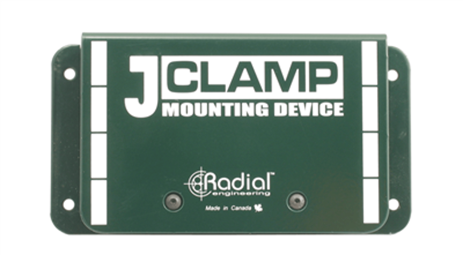 The J-Clamp is used to secure the JDI, J48, Twin-Iso and most other full-sized Radial products. You merely remove the four outer screws from the DI box, and slide the inner frame into the J-Clamp.