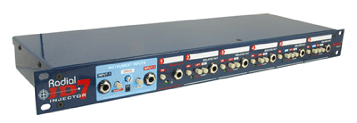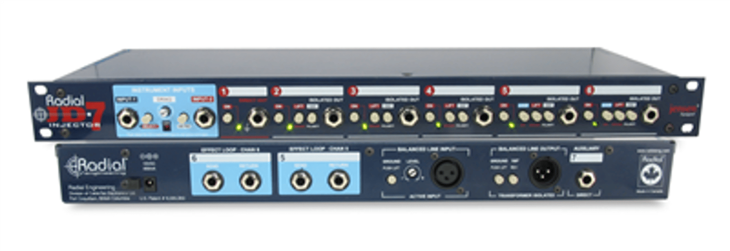The Radial JD7 Injector is a guitar signal splitter that is able to drive as many as seven amplifiers at the same time and do so without the noise that often plagues most systems.