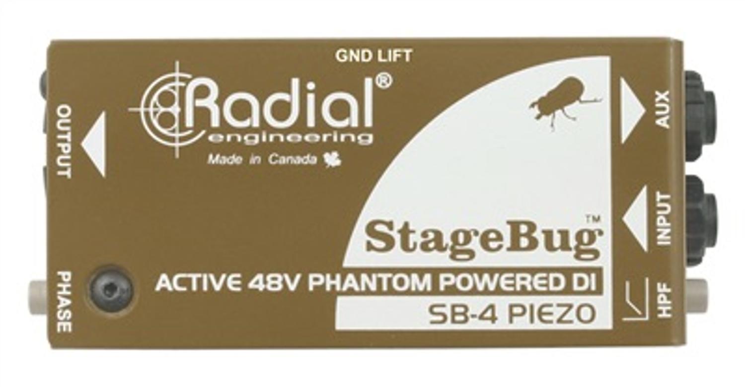 The Radial StageBug SB-4 is a compact active direct box that has been optimized for use with piezo transducers. This enables violin, dobro, mandolin, cello, upright bass and other instruments that are best amplified using a piezo to be connected without compromising the tone or frequency response.