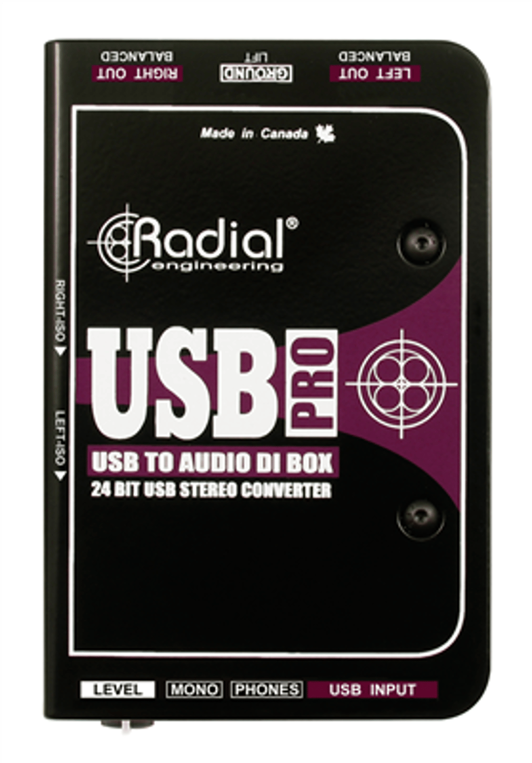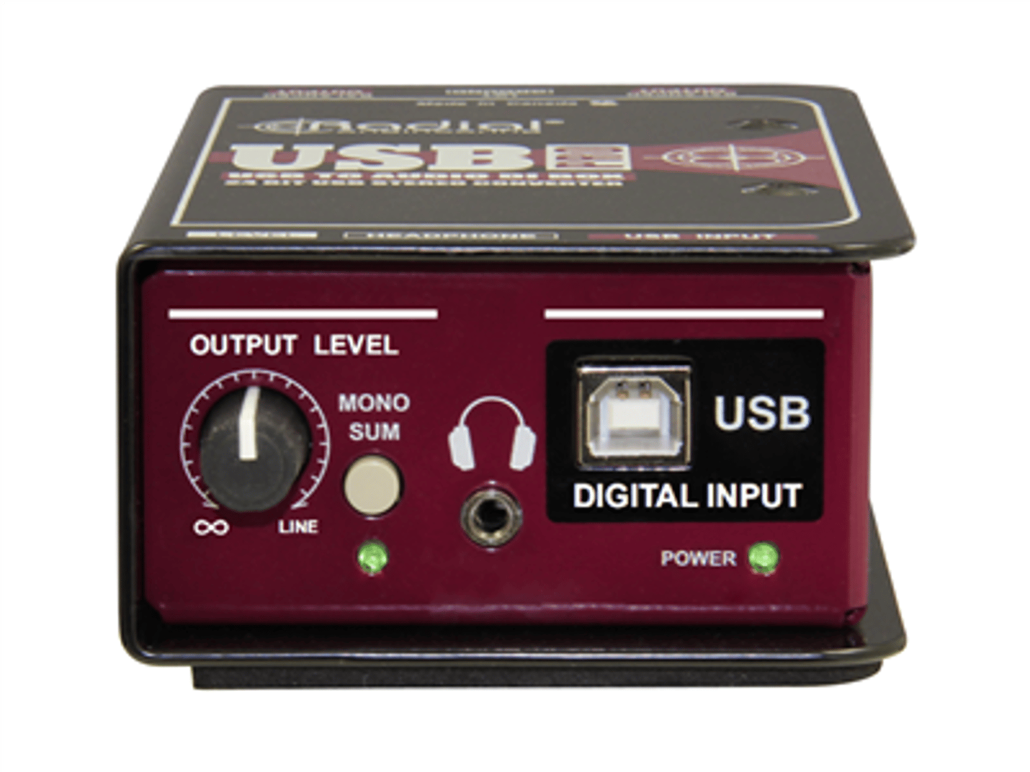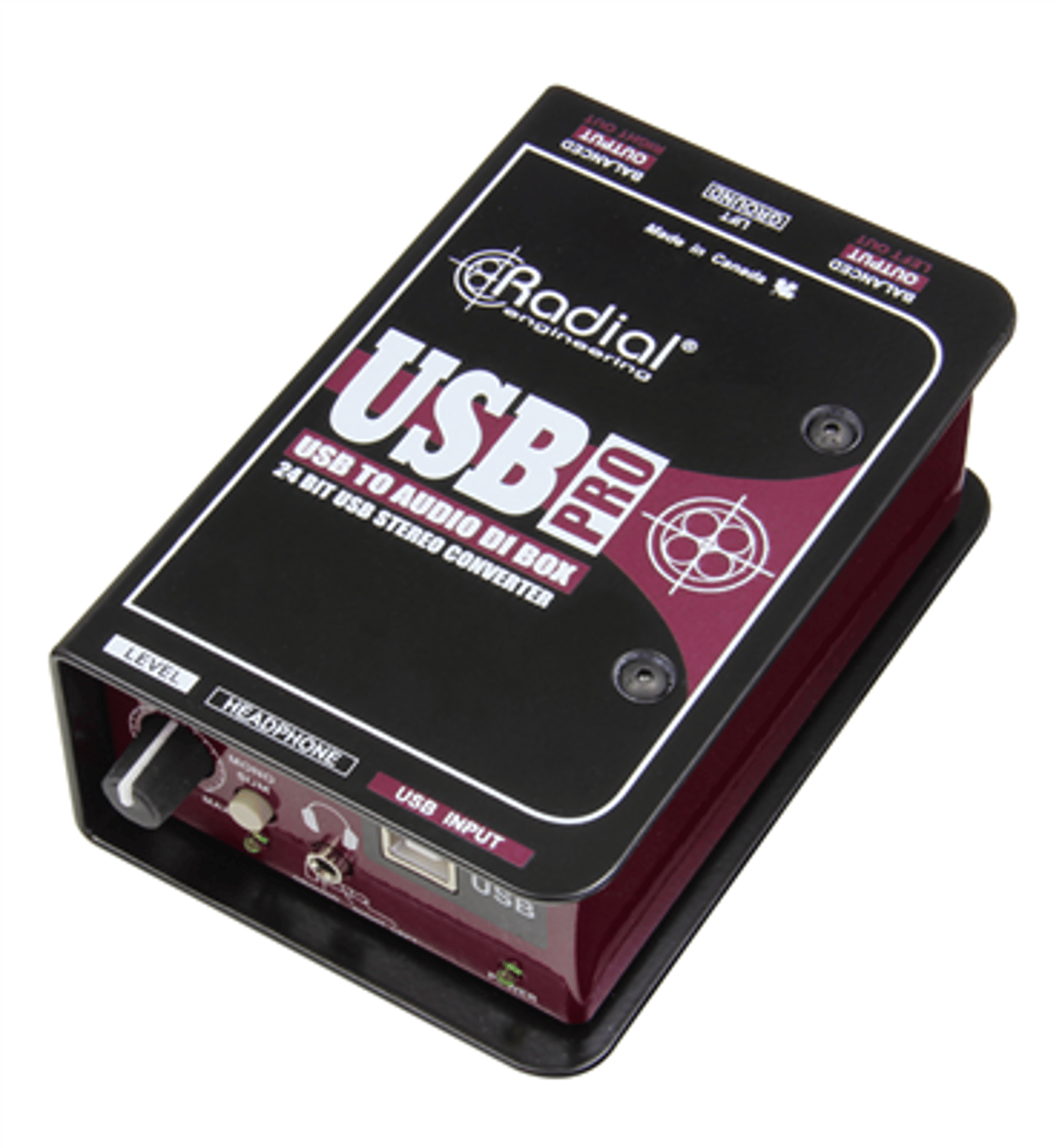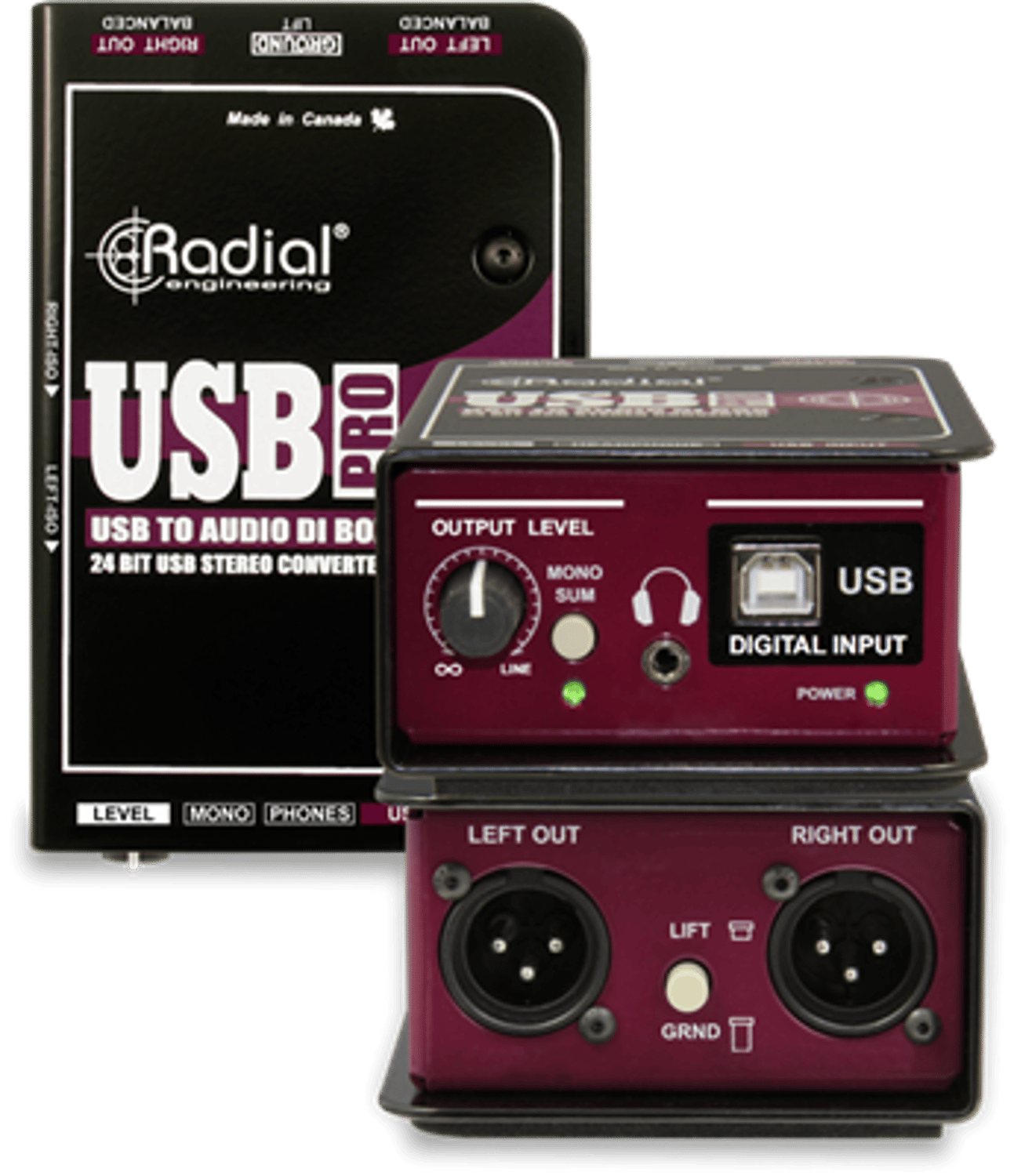 The Radial USB-Pro is a high-resolution stereo digital audio converter (DAC) and direct box that is designed to connect to any computer system to seamlessly transfer digital audio to analog. A stereo pair of balanced XLR audio outputs with adjustable level control then feeds the signal to a microphone preamplifier, PA system, mixing console or even a powered speaker! Made for plug and play simplicity, the USB-Pro will automatically be listed as an available sound card in the audio settings in all popular operating systems including Windows XP, Windows 7/8, and Mac OSX.