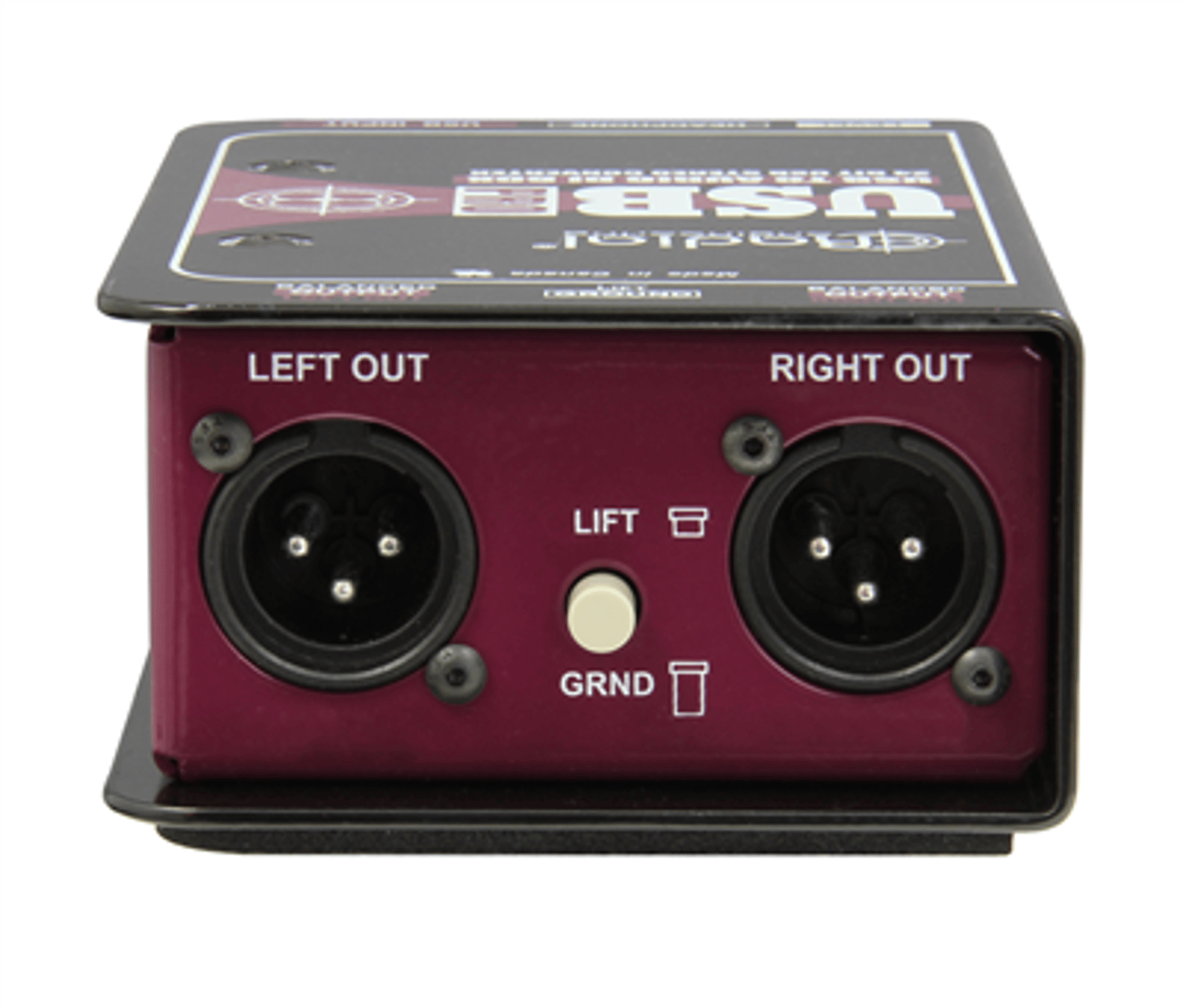 Connection to a computer is accomplished through a standard USB type-B port. Digital-to-analog conversion can be monitored on headphones through the 3.5mm analog output to check signal quality and level before connecting to a sound system. A mono-sum switch may be engaged to check for phasing or for connection to a mono system. Should hum or buzz caused by ground loops be encountered, two recessed side-access switches allow the user to insert isolation transformers into the signal path. To further reduce susceptibility to noise, this is augmented with a ground lift switch that lifts pin-1 on both XLR jacks.