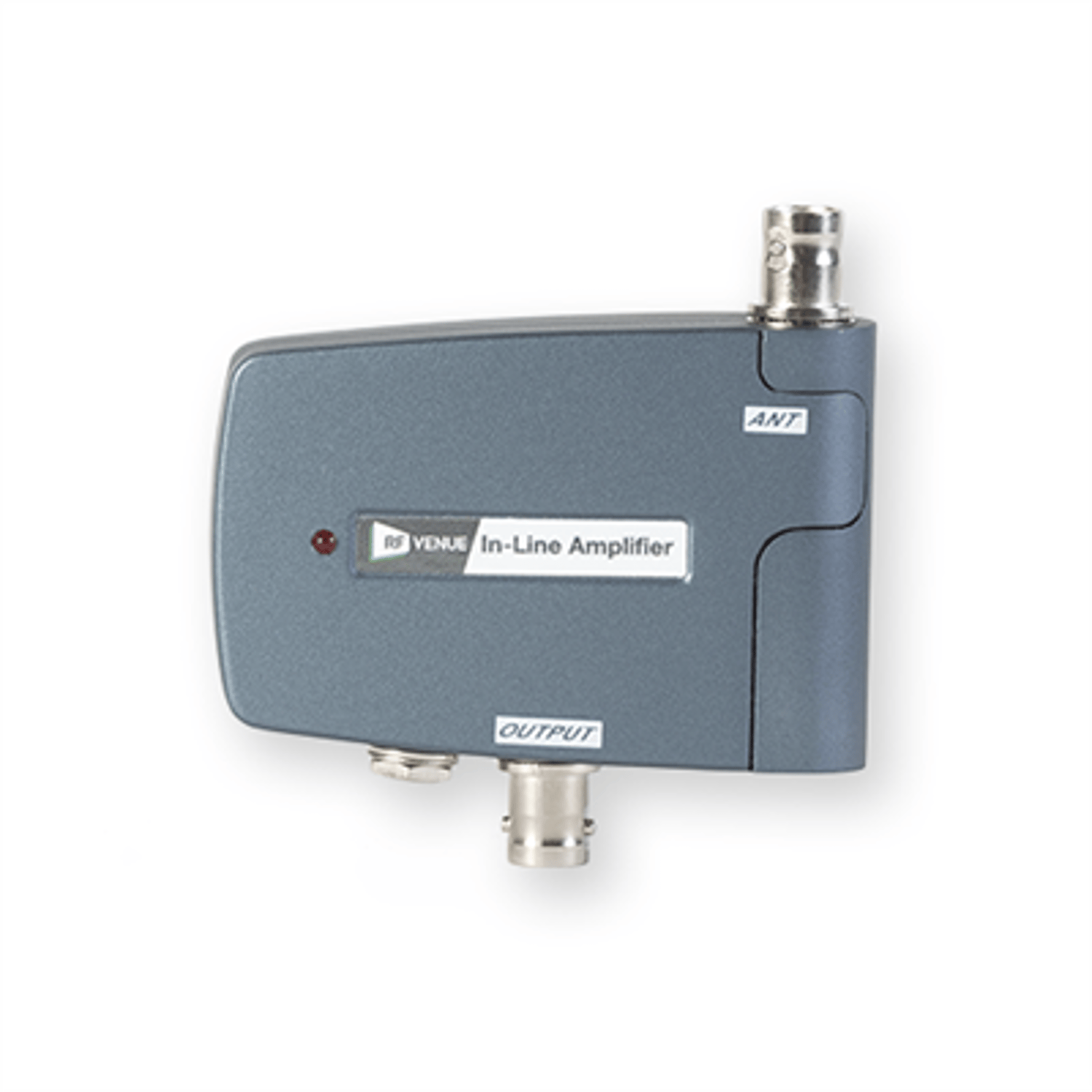 Can be powered by power output from an antenna distributor/receiver or DC adapter (+12V/0.5A). The red light indicates the unit is getting power. Up to two can be cascaded. A BNC female to BNC female adapter or coax jumper is required for cascade (not included).Two are required for diversity applications.