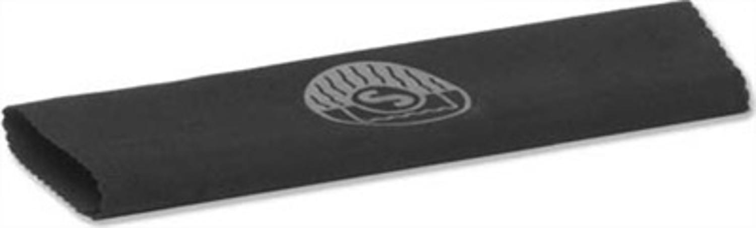Black polishing cloth featuring a Shure 'S' logo for use with any microphone.