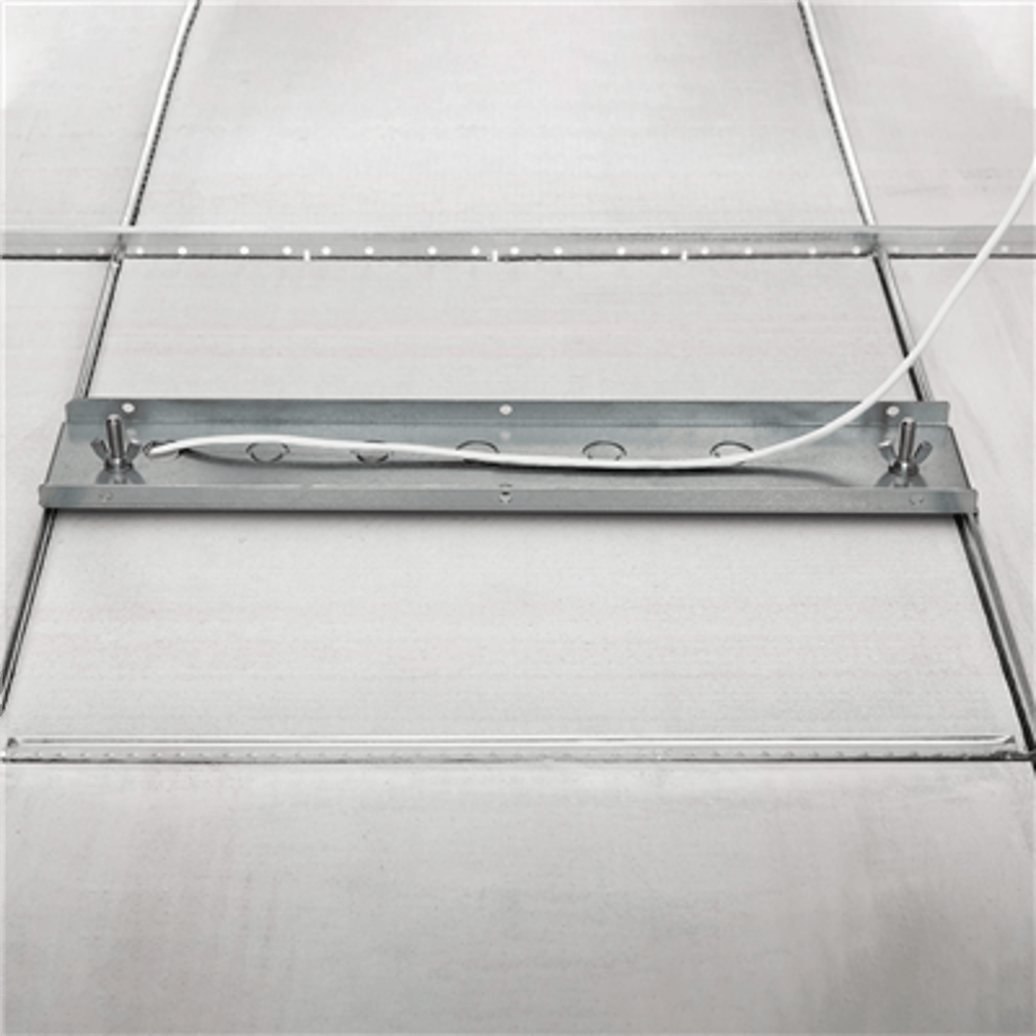 The A710-TB Ceiling and Suspension Mount Kit allows for easy installation of the MXA710 Linear Array Microphone with drop ceiling grids. Mount the microphone directly to the ceiling tiles, or suspend the microphone from the grid using the included cables. Use 1 tile bridge to mount the MXA710-2FT, or 2 tile bridges to mount the MXA710-4FT. Each tile bridge has knockouts for cable routing and includes a hardware kit for both mounting options.