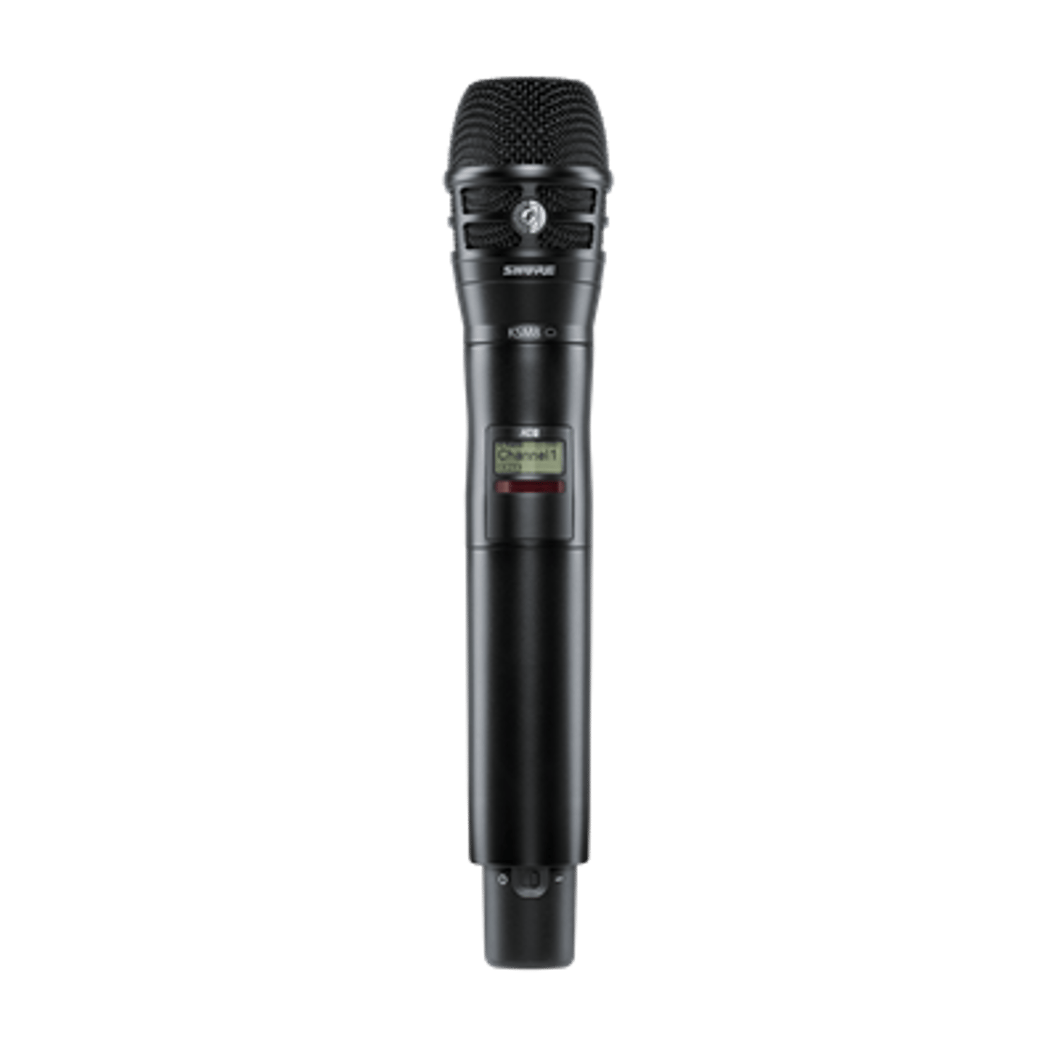 Shure AD2 with K8B head (black), delivers impeccable audio quality and RF performance with wide-tuning, High Density mode, and encryption. Features durable metal construction, rechargeable power with dockable charging, and black or nickel finish options.