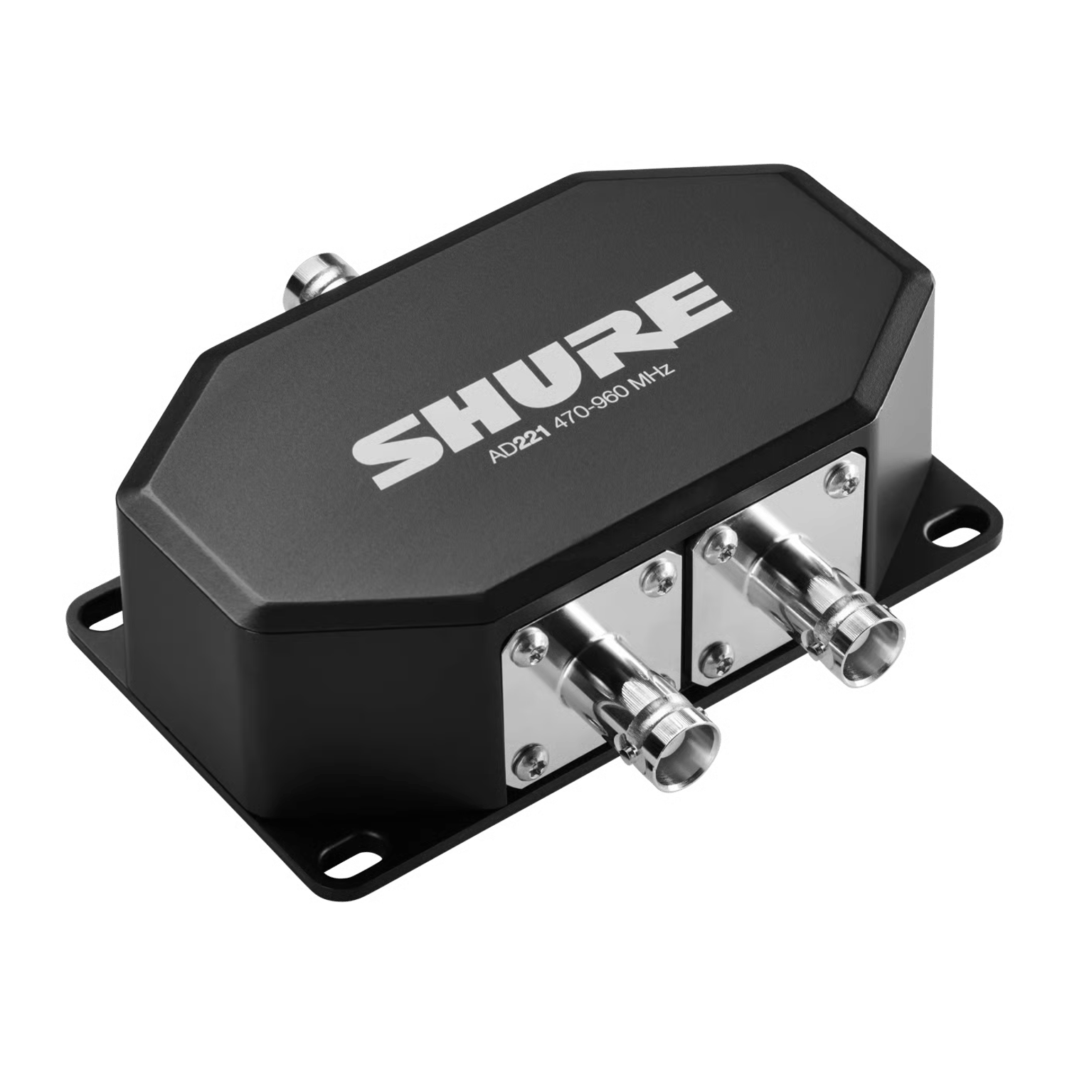 Shure AD221 2-Way Combiner/Splitter streamlines your use of multiple Axient Digital PSM systems at any venue. AD221 splits an incoming signal into two outgoing signals or combines two incoming signals into one signal. Shure AD221 2-Way Combiner/Splitter enables Automatic Transmitter Compensation with ADTQ or ADTD Axient Digital PSM transmitters, which helps defend against passive signal loss.