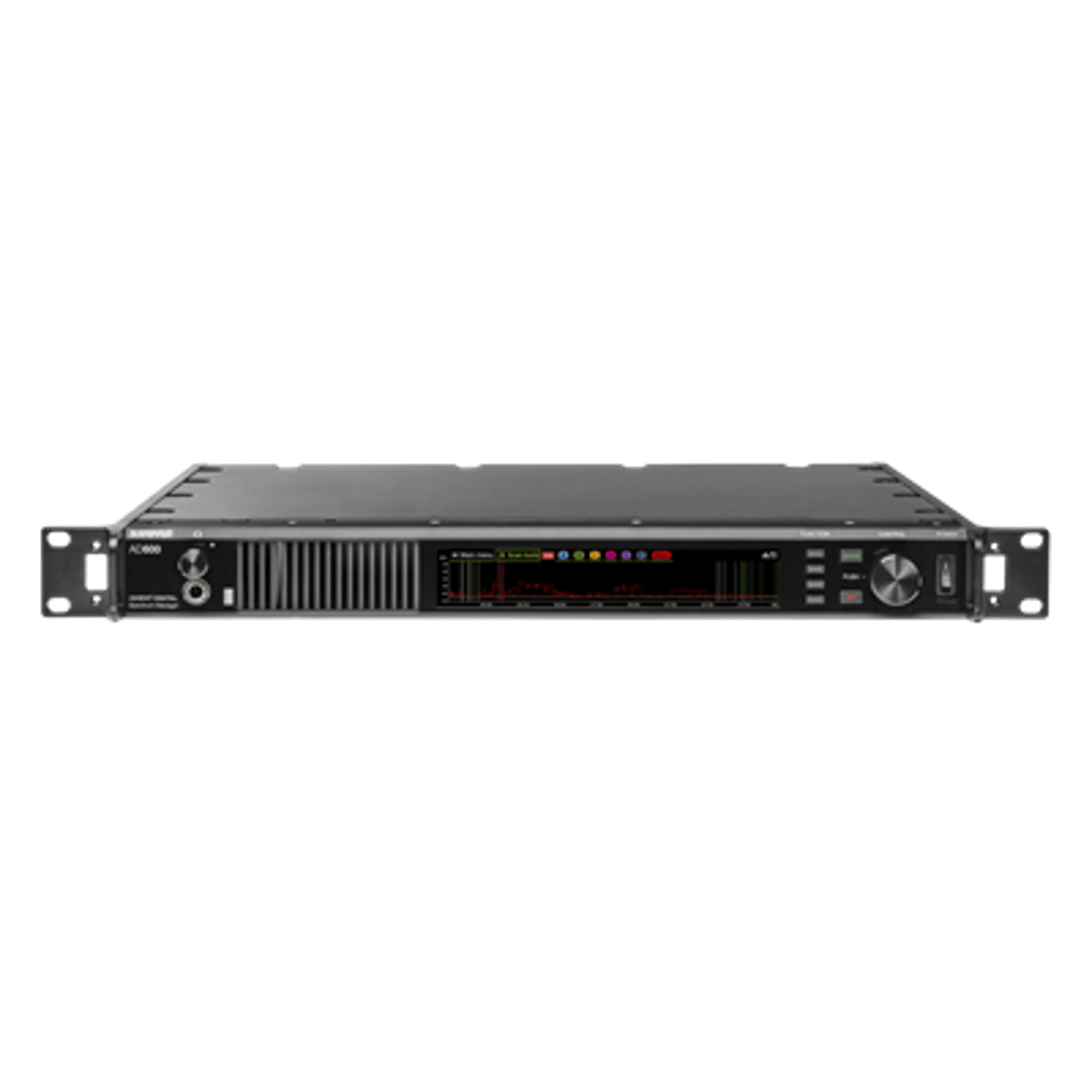 The Shure Axient® Digital AD600 Digital Spectrum Manager is a powerful, next-generation tool for planning and managing frequency coordination in professional audio applications. Use Guided Coordination menus to plan, RF scan, and deploy frequencies to your entire system, or dive deeper for complete control. Additional tools are available to analyze the spectrum, capture data, and perform site RF surveys. Monitor demodulated audio from your network using Dante Browse and listen over Dante features. The AD600 features a large, full-color 6.6-inch front panel screen making viewing information easy while real-time scanning and monitoring of RF activities keeps live information available when you need it most.