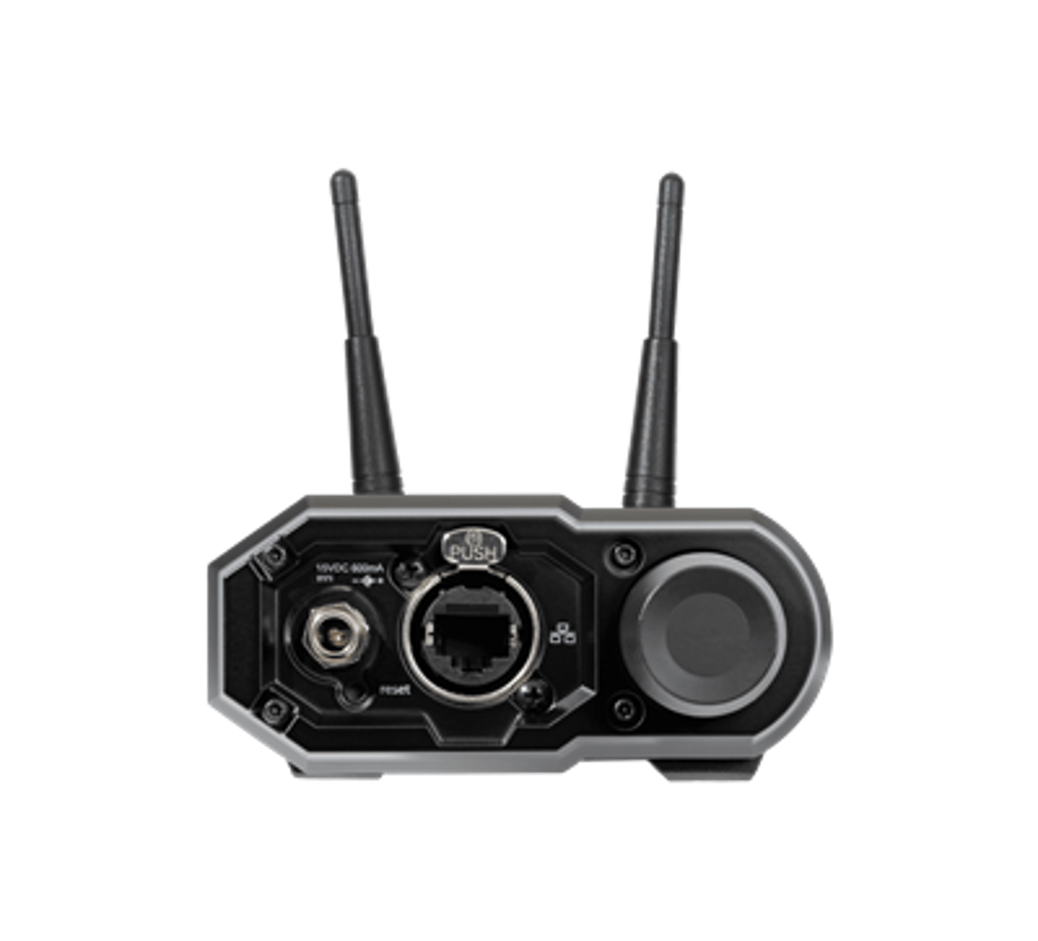 Multiple access points can extend the operational range or increase the number of transmitters supported on the ShowLink network. The access point features true diversity antenna inputs along with mounting points for ¼"-20 and M6 x 1.0 thread.