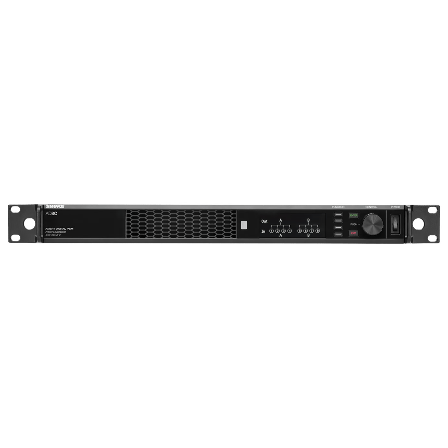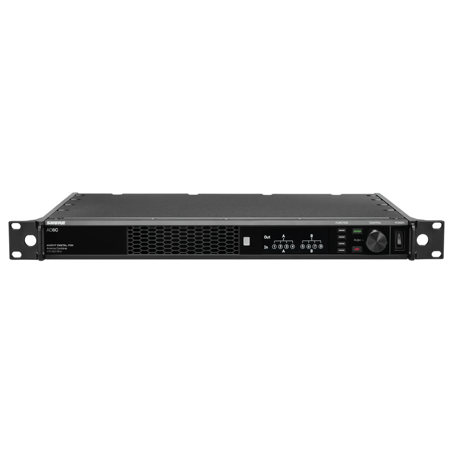 8-port passive antenna combiner for Axient Digital PSM Selectable 8:1 or 2x 4:1 modes o 8:1 mode combines up to 32 WMAS channels* o 2x 4:1 mode combines up to 16 WMAS channels* Automatic Transmitter Compensation with ADTQ or ADTD Axient Digital PSM transmitters Ethernet switch for remote control and firmware updates DC module version available to support redundant power