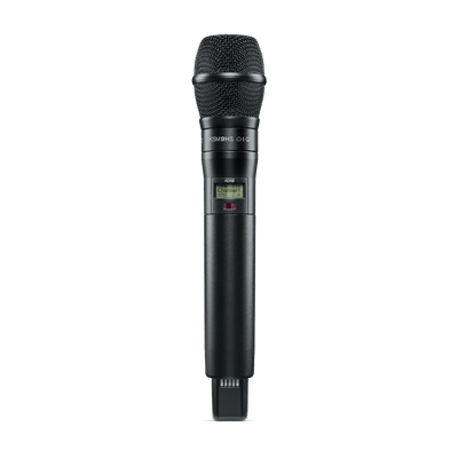 Shure ADX2 with K9HSB capsule (black), like all ADX transmitters, sets the stage for exceptional performance, with wide tuning up to 184 MHz, interference protection, advanced rechargeability, streamlined design, and ShowLink remote control for real-time parameter adjustments right from the booth.