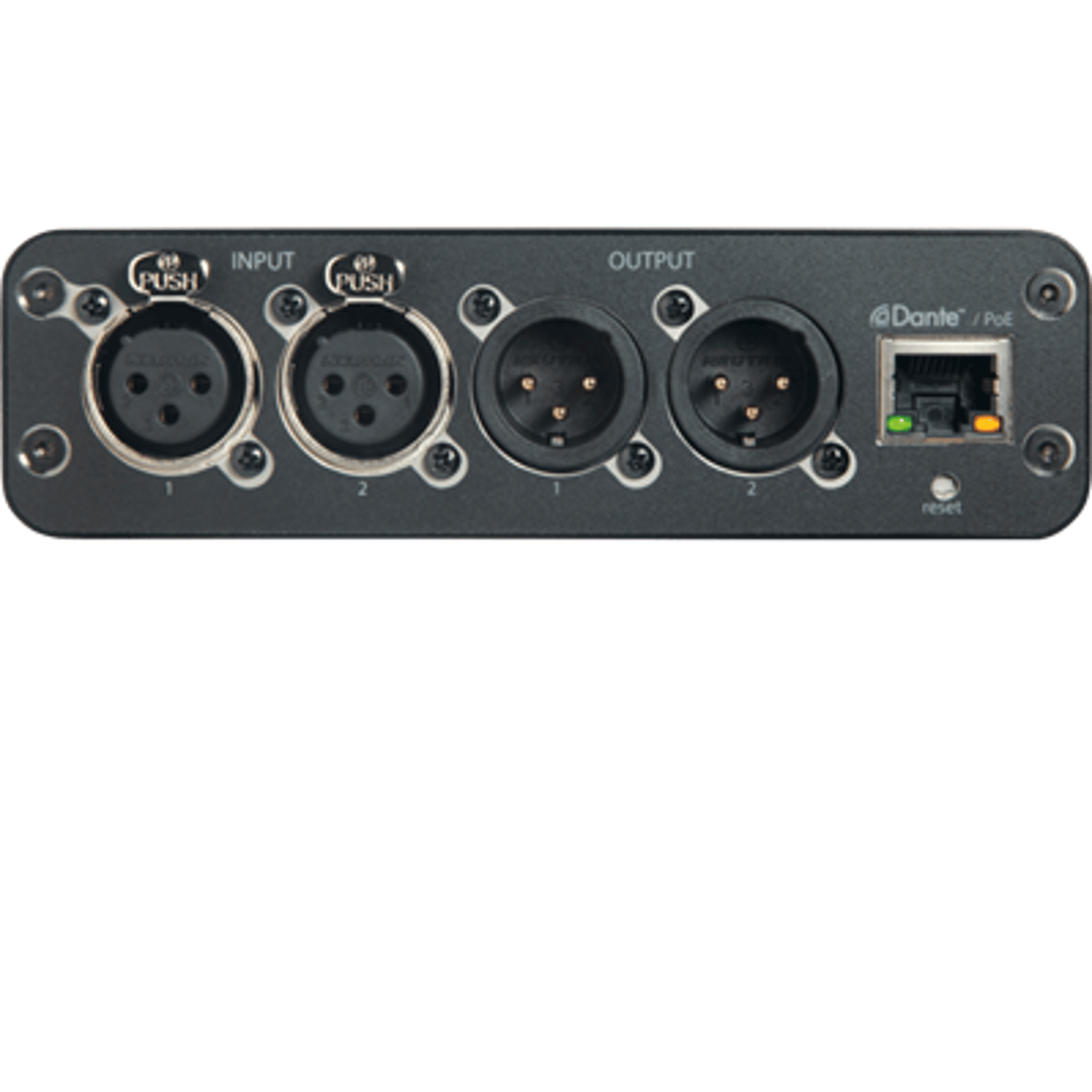 Audio network interface converts up to 2 line or mic signals from a Dante network for easy audio routing and convenient browser-based remote control. Audio network interface complements the existing ANI4IN and ANI4OUT products.