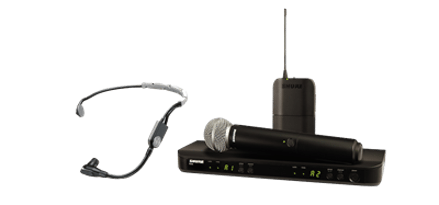 BLX1 bodypack transmitter BLX88 dual channel receiver SM58 handheld microphone with integrated transmitter SM35 headset microphone Read more