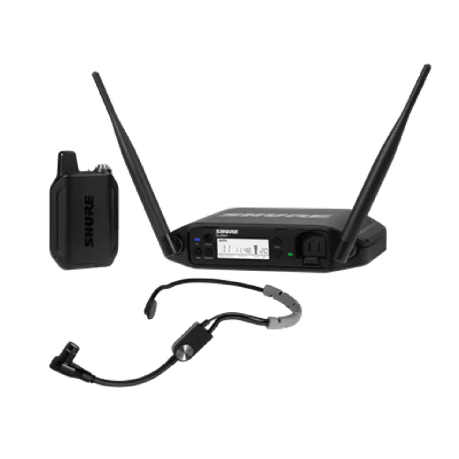 The new GLX-D+ Dual Band Wireless Headset System features the durable SM35 Headset Microphone for high-quality headworn vocal performance applications and the GLXD4+ tabletop receiver. The perfect combination of the automatic frequency management with the new Dual Band Technology provides reliable and consistent performance, while Shure proprietary Lithium-Ion rechargeable batteries provide up to 12 hours of use. Go wireless without complication.