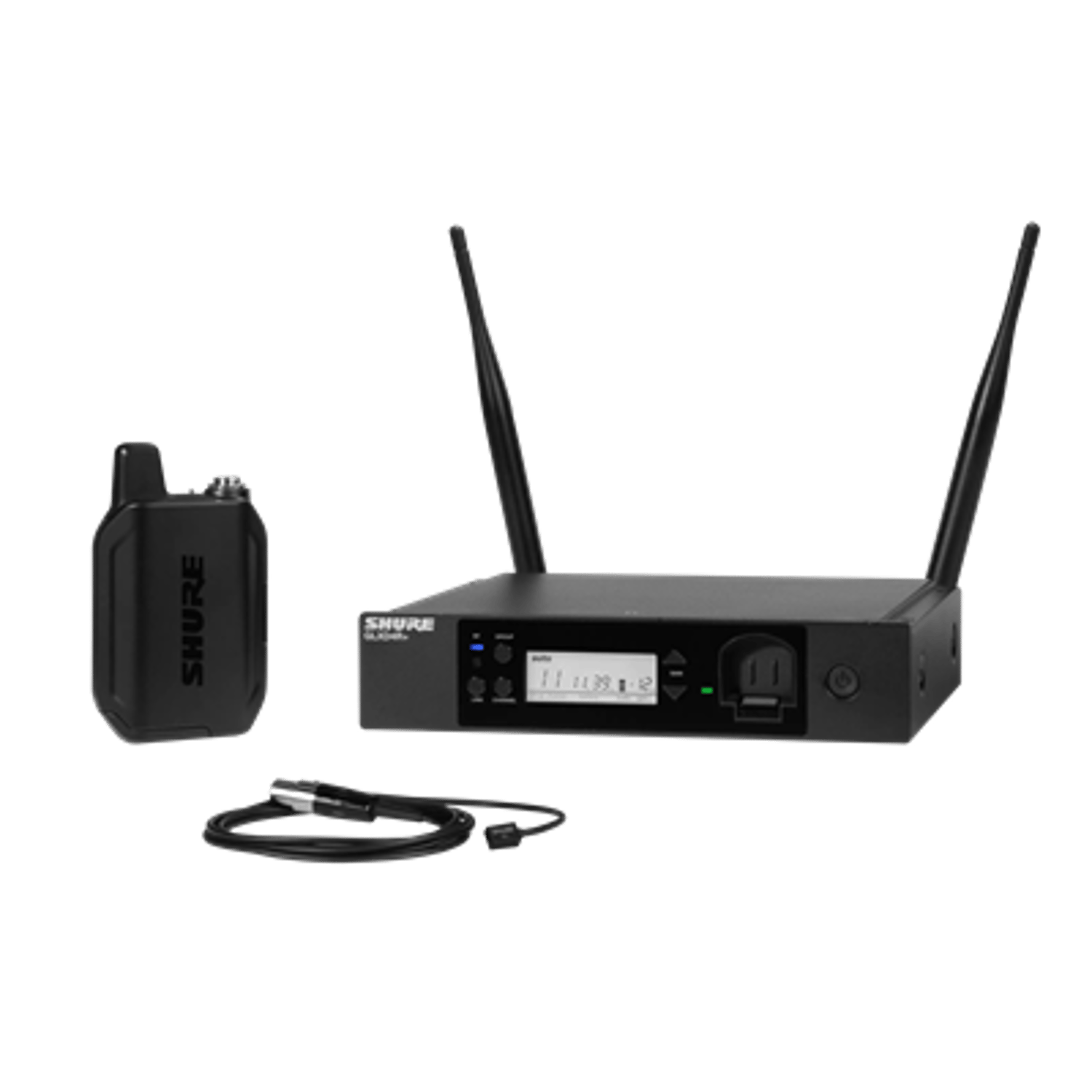 f the automatic frequency management with the new Dual Band Technology provides reliable and consistent performance, while Shure proprietary Lithium-Ion rechargeable batteries provide up to 12 hours of use. Go wireless without complication.Read moreThe new GLX-D+ Dual Band Wireless Rack System features the miniature wearable WL93 lavalier microphone for spoken word applications and the GLXD4R+ half-rack receiver.