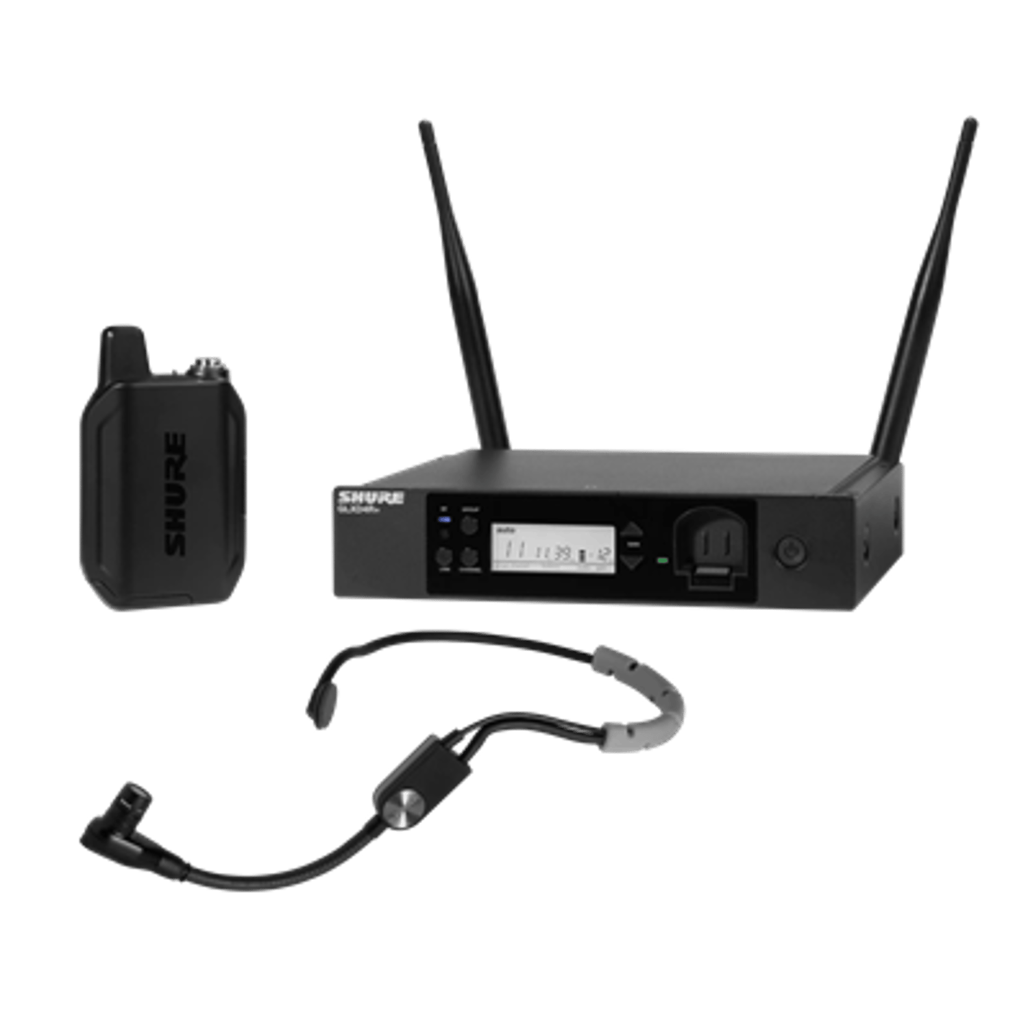 f the automatic frequency management with the new Dual Band Technology provides reliable and consistent performance, while Shure proprietary Lithium-Ion rechargeable batteries provide up to 12 hours of use. Go wireless without complication.Read moreThe new GLX-D+ Dual Band Wireless Rack System features the durable SM35 Headset Microphone for high-quality headworn vocal performance applications and the GLXD4R+ half-rack receiver.