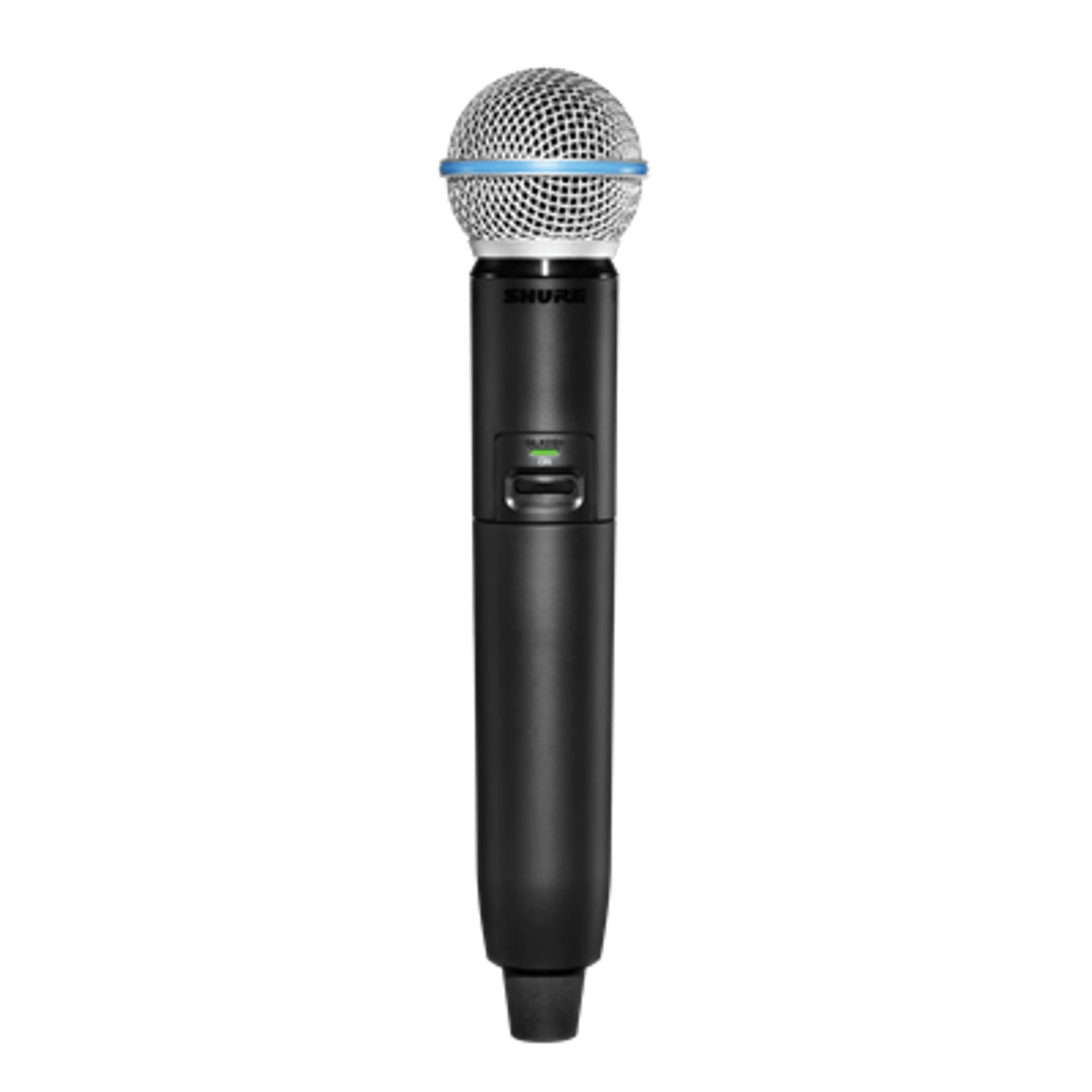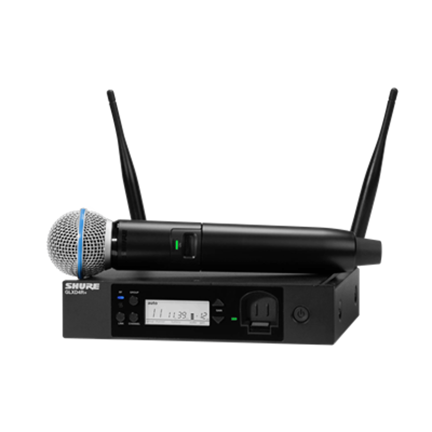 Featuring the industry standard BETA®58A vocal microphone, the new half-rack GLXD24+/B58 Dual Band Vocal System delivers superior, transparent digital audio. The perfect combination of the automatic frequency management with the new Dual Band Technology provides reliable and consistent performance while Shure proprietary Lithium-Ion rechargeable batteries provide up to 12 hours of use. Go wireless without complication.