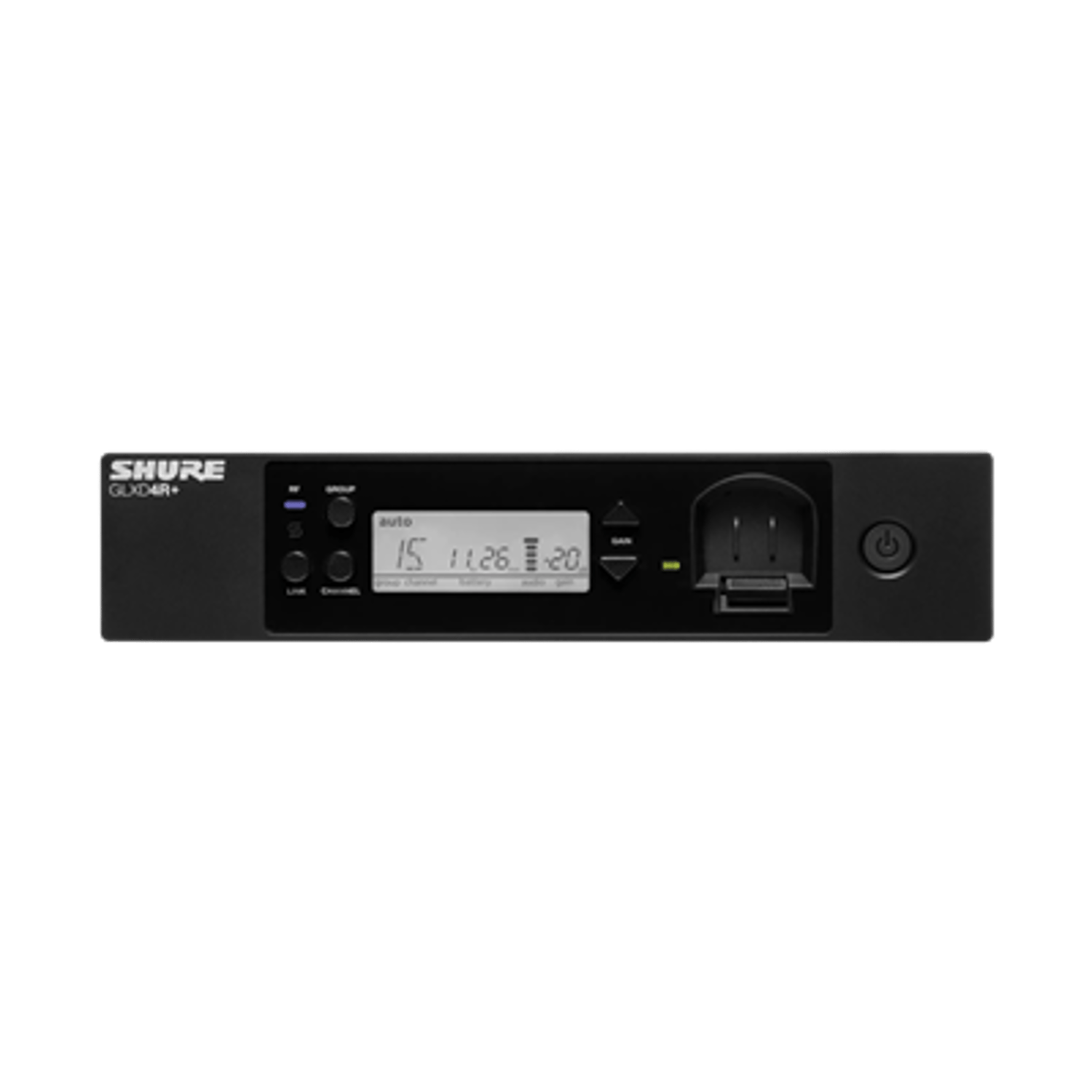 Featuring the industry standard SM58® vocal microphone, the new half-rack GLXD24+/SM58 Dual Band Vocal System delivers superior, transparent digital audio. The perfect combination of the automatic frequency management with the new Dual Band Technology provides reliable and consistent performance while Shure proprietary Lithium-Ion rechargeable batteries provide up to 12 hours of use. Go wireless without complication.