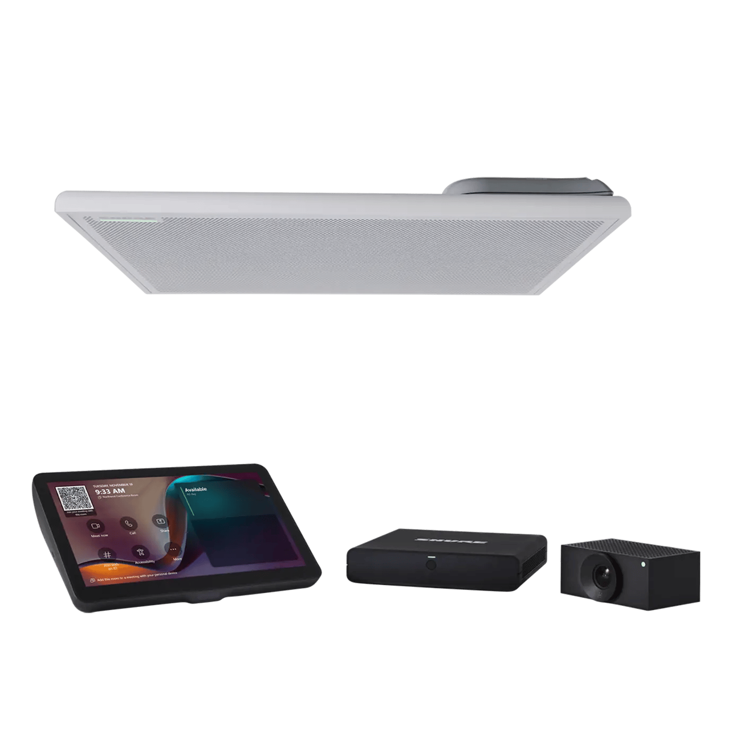 Boost collaboration with simple and secure Microsoft Teams Rooms conferencing kits. With zero-touch provisioning, you can effortlessly deliver high-quality audio and video experiences in your small, medium, and large meeting and collaboration spaces, up to 33 x 18 ft (10 x 5.5 m). The component-based systems provide everything you need - automatically. No programming or adjusting of audio and video settings is required. All kits include a powerful Windows-based Teams Rooms compute with Shure’s premium audio signal processing, an intuitive touch panel, a superior all-in-one ceiling array microphone + loudspeaker, and intelligent, high-resolution video.