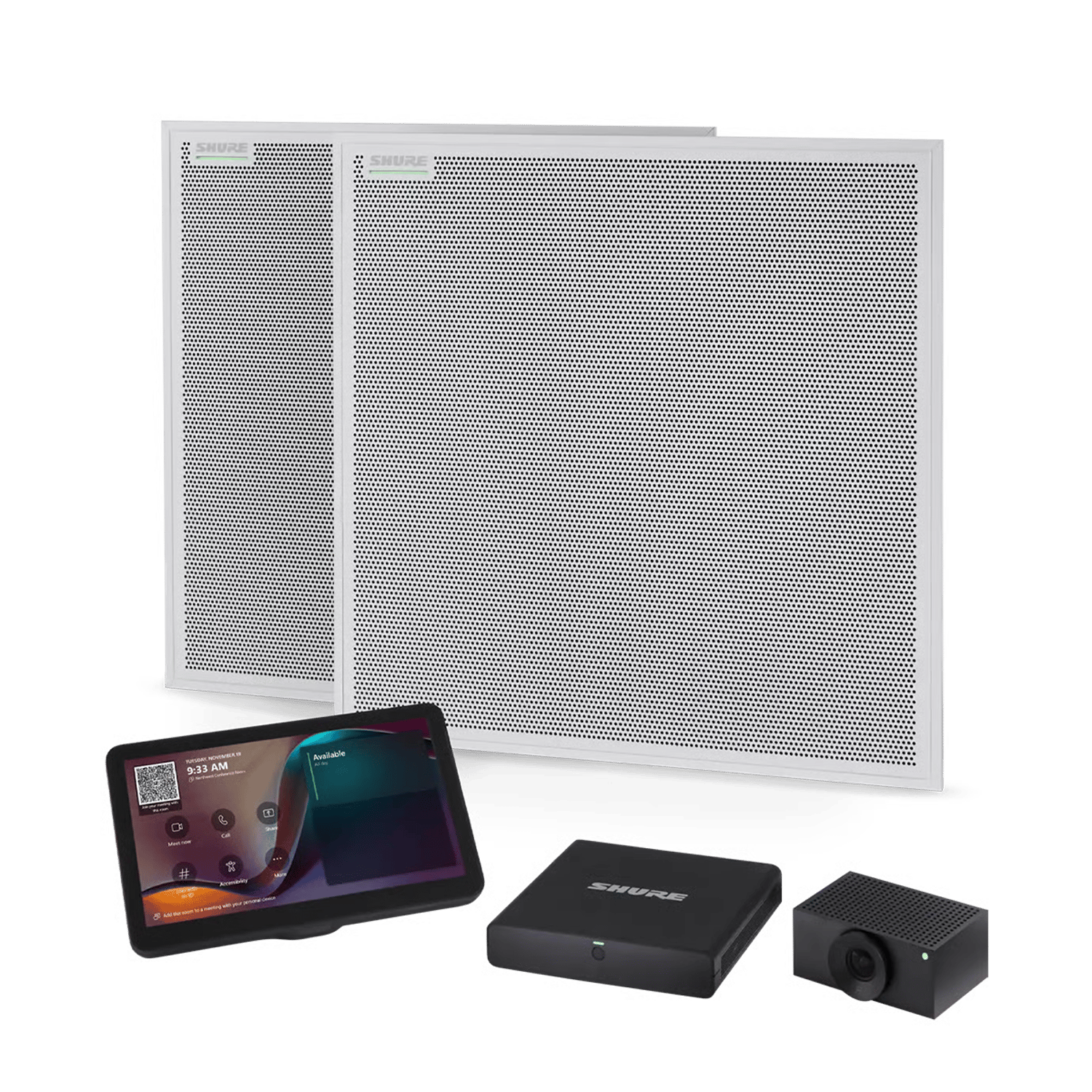 Boost collaboration with simple and secure Microsoft Teams Rooms conferencing kits. With zero-touch provisioning, you can effortlessly deliver high-quality audio and video experiences in your small, medium, and large meeting and collaboration spaces, up to 33 x 18 ft (10 x 5.5 m). The component-based systems provide everything you need - automatically. No programming or adjusting of audio and video settings is required. All kits include a powerful Windows-based Teams Rooms compute with Shure’s premium audio signal processing, an intuitive touch panel, a superior all-in-one ceiling array microphone + loudspeaker, and intelligent, high-resolution video.