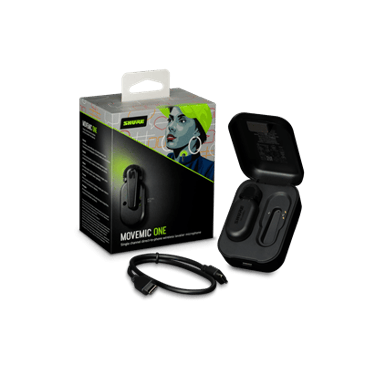 Pocket-sized Professional Audio. Single-channel wireless microphone for mobile that pairs directly with your iOS or Android device using the Shure MOTIV video or audio apps. Carefully designed to be as small and discreet as possible. Created by the same Shure team behind the professional wireless microphone systems used by the world’s leading artists, venues and festivals. 24 hours of recording on the go: MoveMic lavaliers provide eight hours of battery life within the microphone, with an additional two full charges ready in the convenient carrying case. MoveMic One offers instant setup and connectivity, enabling you to record in seconds without missing a beat. Realize the potential of receiver-free wireless, with one channel of high-quality audio transmitted directly to your phone. Utilizing a custom acoustic design and proprietary wireless software, MoveMic achieves broadcast-quality audio quality beyond traditional mobile devices. The free ShurePlus MOTIV apps allow you to customize your audio and video settings for optimal recording. Configure gain, limiter, EQ, compression, noise reduction and record within the apps. Add the MoveMic Receiver (sold separately) for added compatibility with DSLR and mirrorless cameras, computers, as well as popular third-party mobile apps. Rated IPX4, MoveMic One is designed to withstand rain, spills and splashes, ensuring your content is not limited by environmental conditions. In the box