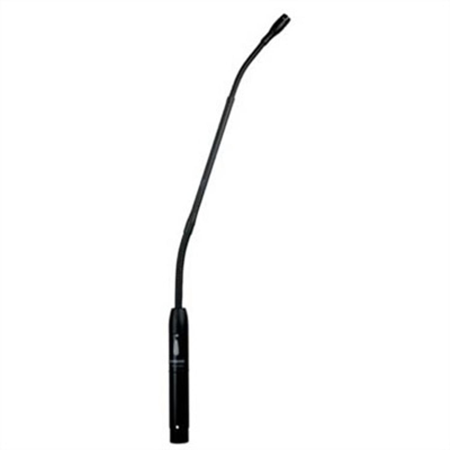 Gooseneck microphone offers interchangeable cartridges and enhanced length and flexibility for reliably clear sound reproduction. It features high sensitivity and maximum resistance to electromagnetic hum and RF interference, even over long cables.
