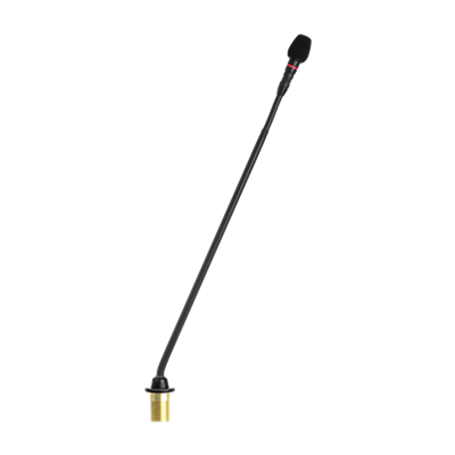 The MX415 surface mount version is a gooseneck microphone with a Bi-Color LED or light ring status display. It has a 38.1 cm gosseneck and is suitable for boardrooms and other sites where aesthetics are important.