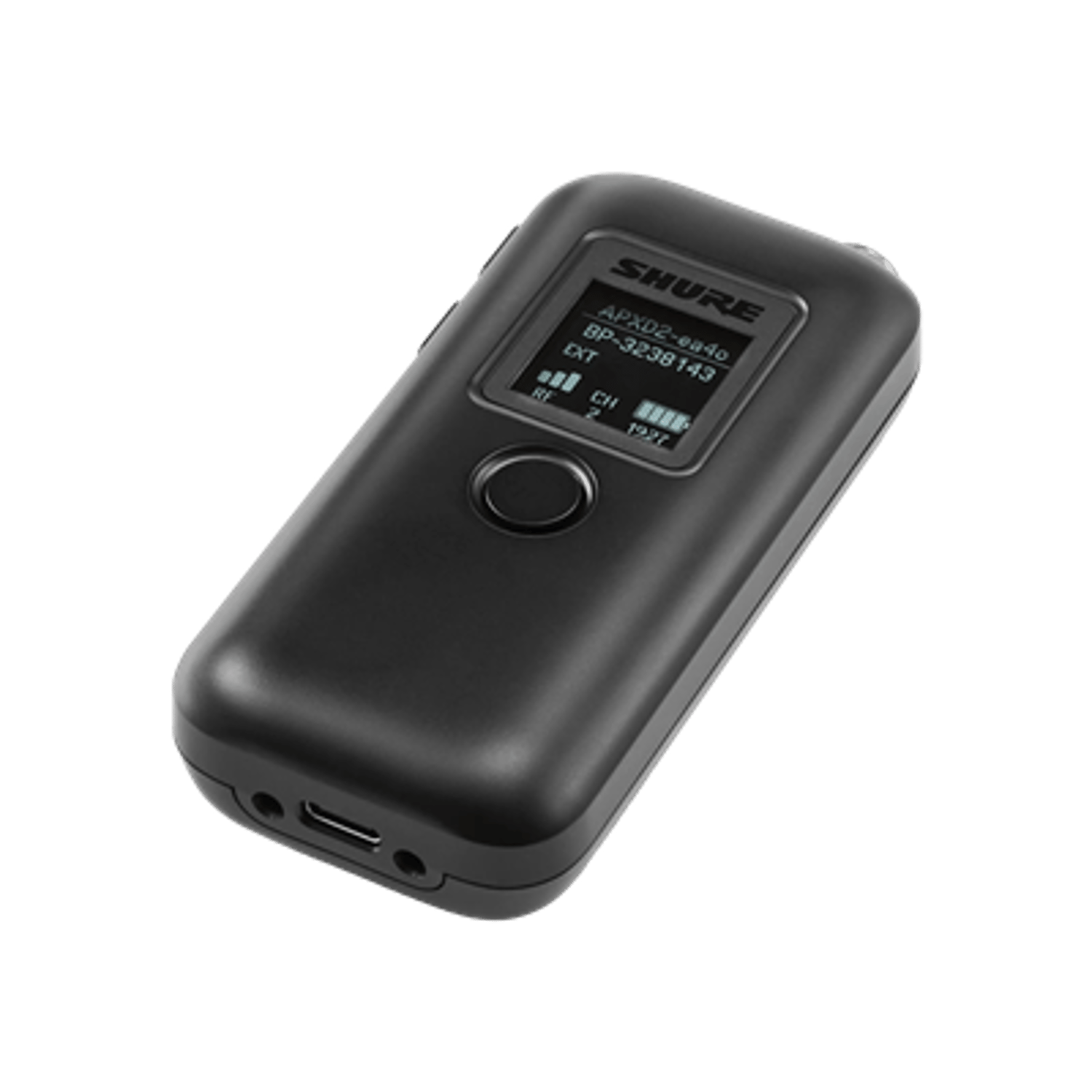 Microflex Wireless neXt bodypack transmitters deliver clear sound, reliable wireless performance, encrypted transmission, and advanced rechargeability for conferencing and presentation applications. TA4F microphone input connects to most Shure lavalier or headworn microphones. Integrated omnidirectional mic captures full-range audio without connecting an external microphone. Programmable mute button can control one or multiple transmitters; can be configured as push-to-talk, push-to-mute, or push-on/push-off functioning. MXW neXt transmitters can be remotely muted/unmuted by room control system. Power switch can be defeated to prevent accidental powering off. Information screen displays battery time remaining, room assignment, and more. Adjustable transmit power provides reliable wireless coverage up to 160 feet (50 meters). Out-of-range alert reminds user to return transmitter to charging station. Always-on AES-256 encryption provides enhanced privacy for meeting audio. Smart lithium-ion internal battery pack (included) delivers up to 17 hours of continuous use. Earphone jack allows user to listen to translation, cueing, or program audio.
