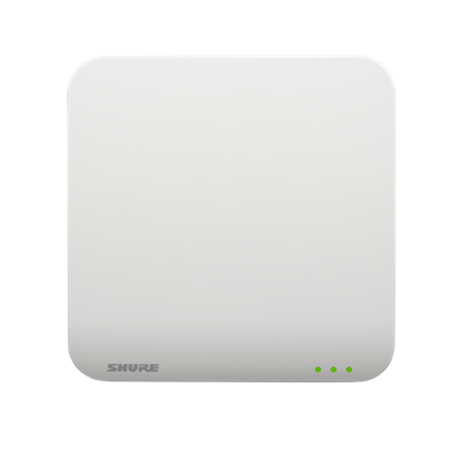 Easy installation: Includes wall / ceiling mounting plate and connects to the system over single Ethernet cable (PoE compatible)Plenum rated: Meets rigorous fire safety test standards for installation above drop ceiling tilesScalable configurations: Multiple units can be combined to support configurations of up to 40 compatible channels (80 in Europe and select countries).Bi-directional wireless: Provides return channel audio to wireless transmitters and enables real-time remote control of all wireless microphone settingsAutomated frequency coordination: Automatically scans available spectrum, coordinates clean frequency assignments, and moves channels away from unexpected interferenceDante digital networked audio: Transports low-latency digital audio received from wireless microphones over Cat5e cable to any other Dante-equipped deviceEncrypted wireless: AES 256-bit encryption for secure transmissionSelectable output power: Optimize spectrum usage by selecting the appropriate wireless output power for the desired operating rangeDiagnostic LEDs: LEDs offer easy visual reference to system activity and indicate power, wireless connection, and network audio status