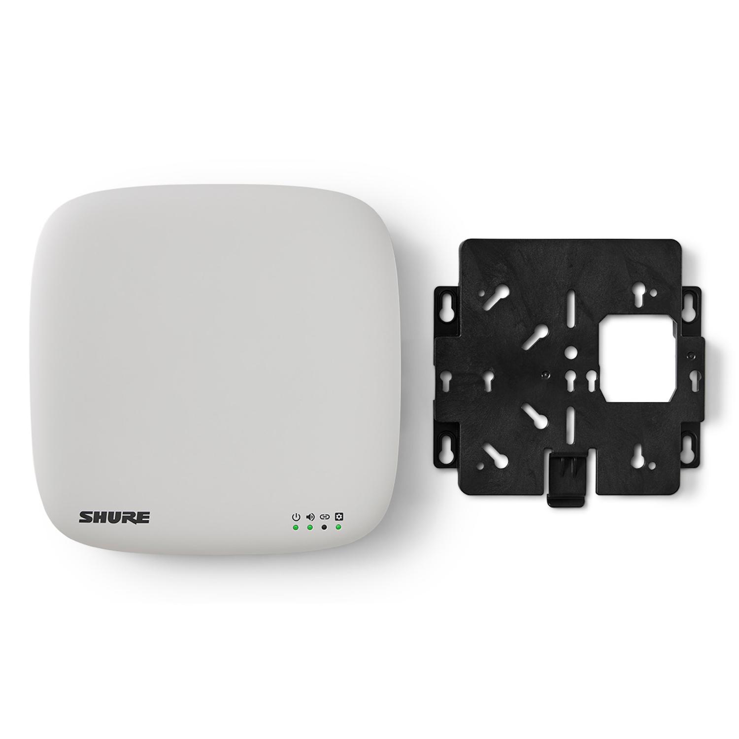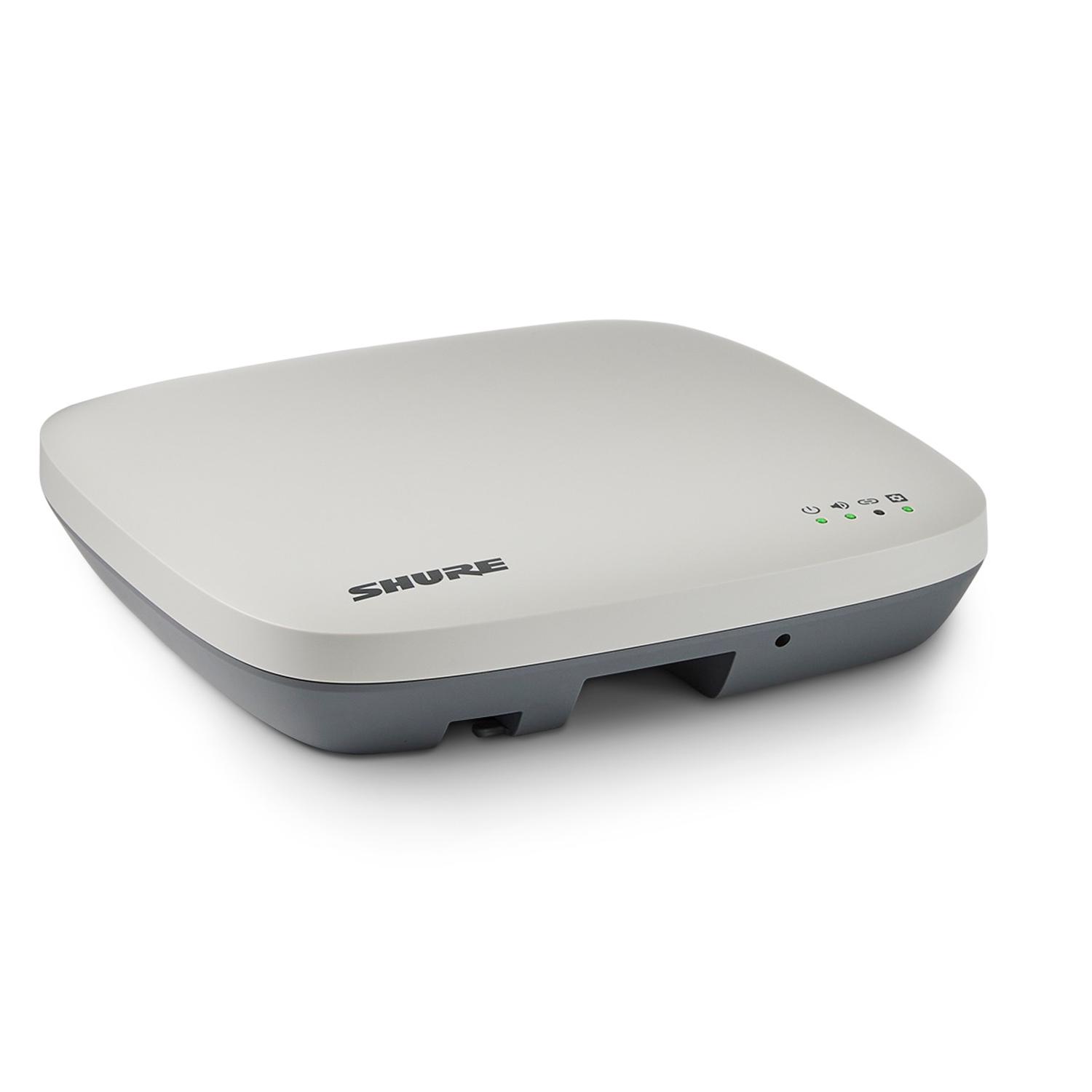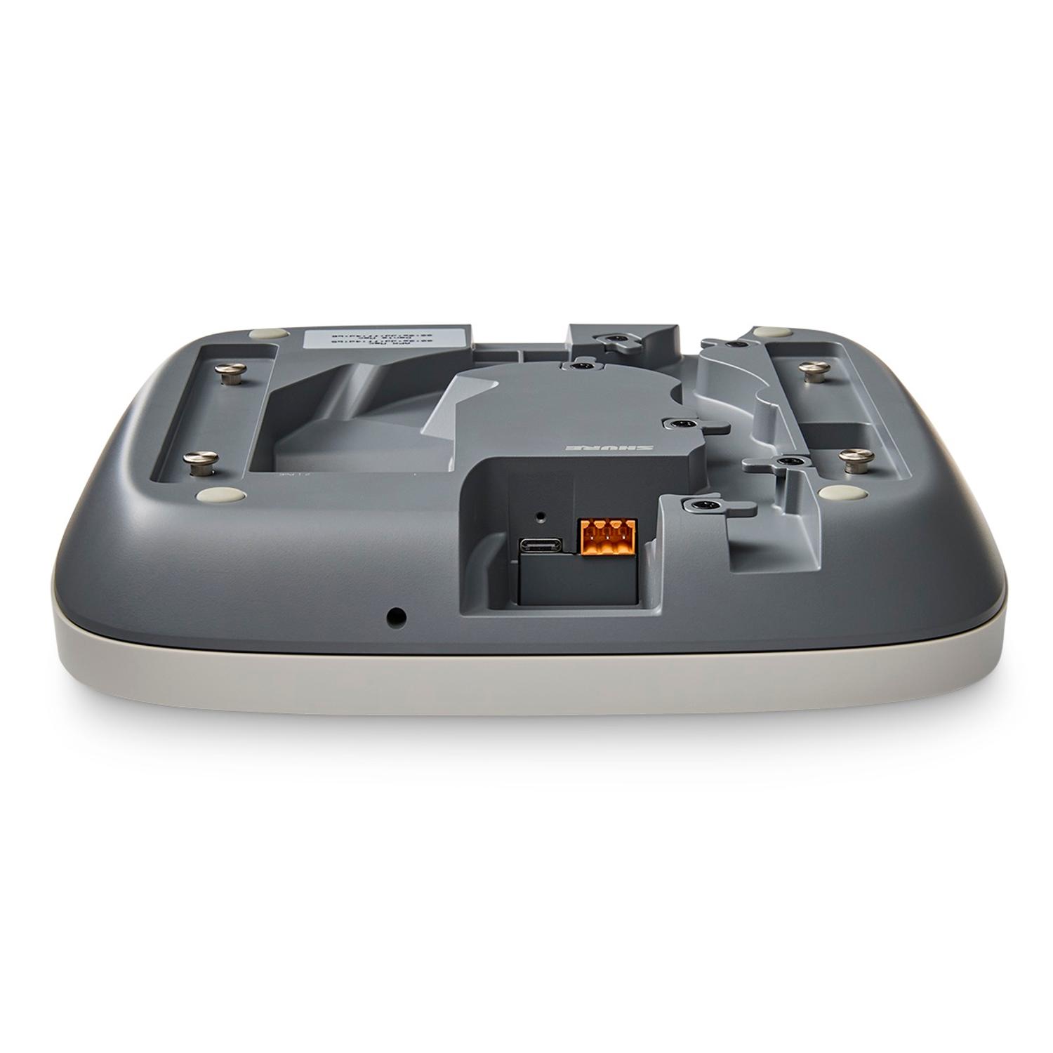Specifications Analog, Dante, and USB-C audio connections. Built-in IntelliMix DSP audio processing with: Automatic mixing Echo cancellation Noise reduction Automatic gain control EQ Automatic Frequency Management: Scans the spectrum Selects a clear channel Automatically changes channels if interference is expected Power to the unit (via PoE) and Dante digital networked audio are both supplied over a single Ethernet cable to simplify installation. Dual RJ45 connections enable three network operation modes: Switched Split Redundant The supplied mounting plate and paintable cover allow discreet placement on the ceiling or wall in boardrooms and conference rooms where low visibility is preferred. Two-way wireless transmission: Allows for remote control of audio Enables transmission of a secondary program audio to each transmitter Multiple units can be combined to support: Up to 40 compatible channels 80 channels in Europe and select countries (double in HD mode) Supports standards-based security protocols to manage access and protect data, including: 802.1x Secure boot/storage AES encryption for wired and wireless control and audio data Selectable RF output power: Optimizes spectrum usage Allows selection of the appropriate wireless output power for the desired operating range Diagnostic LEDs provide an easy visual reference for system activity, indicating: Power status Wireless connection Network audio status A CUI (Control User Interface) can be accessed on a PC connected to the same network, enabling access to: All device properties Optimization settings User-specific settings Read more