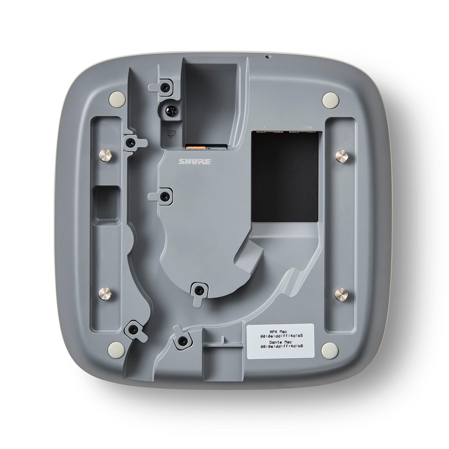 Specifications Analog, Dante, and USB-C audio connections. Built-in IntelliMix DSP audio processing with: Automatic mixing Echo cancellation Noise reduction Automatic gain control EQ Automatic Frequency Management: Scans the spectrum Selects a clear channel Automatically changes channels if interference is expected Power to the unit (via PoE) and Dante digital networked audio are both supplied over a single Ethernet cable to simplify installation. Dual RJ45 connections enable three network operation modes: Switched Split Redundant Supplied mounting plate and paintable cover allow discreet placement on the ceiling or wall in boardrooms and conference rooms where low visibility is preferred. Two-way wireless transmission: Allows for remote control of audio Enables transmission of secondary program audio to each transmitter Multiple units can be combined to support: Up to 40 compatible channels 80 channels in Europe and select countries (double in HD mode) Supports standards-based security protocols for managing access and protecting data, including: 802.1x authentication Secure boot/storage AES encryption for wired and wireless control and audio data Selectable RF output power: Optimizes spectrum usage Allows selection of the appropriate wireless ouRead more