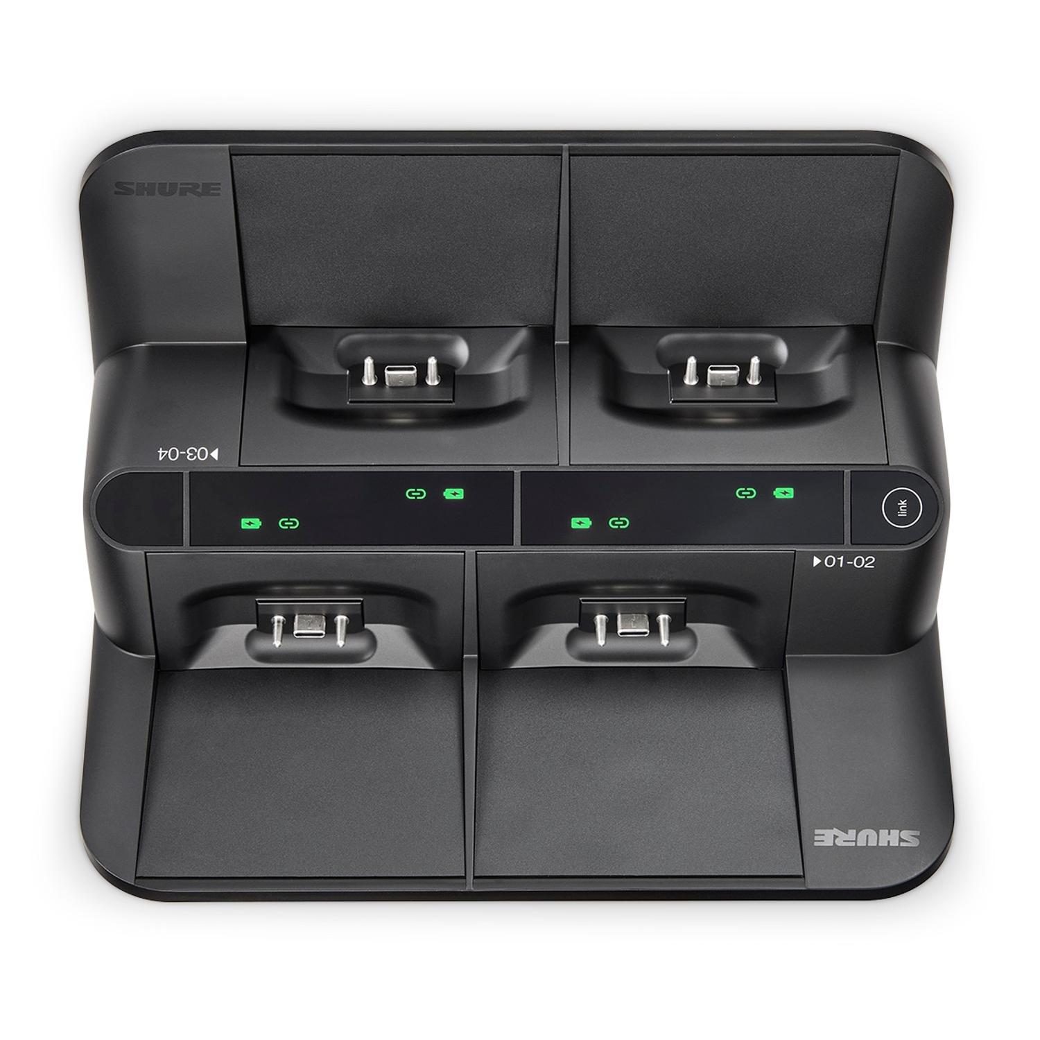 Specifications MXW neXt transmitters can be linked to an associated MXWAPX4 or MXWAPX8 Access Point Transceiver by: Pressing the Link button while the transmitter is in the charger Using the linking workflow in the Control User Interface (CUI) Battery statistics can be shared with networked control software. The charging station automatically checks battery health, including: Number of lifetime charge/discharge cycles Integration with additional MXW neXt hardware and Shure Designer software enables: Monitoring and control tailored to specific applications Read more