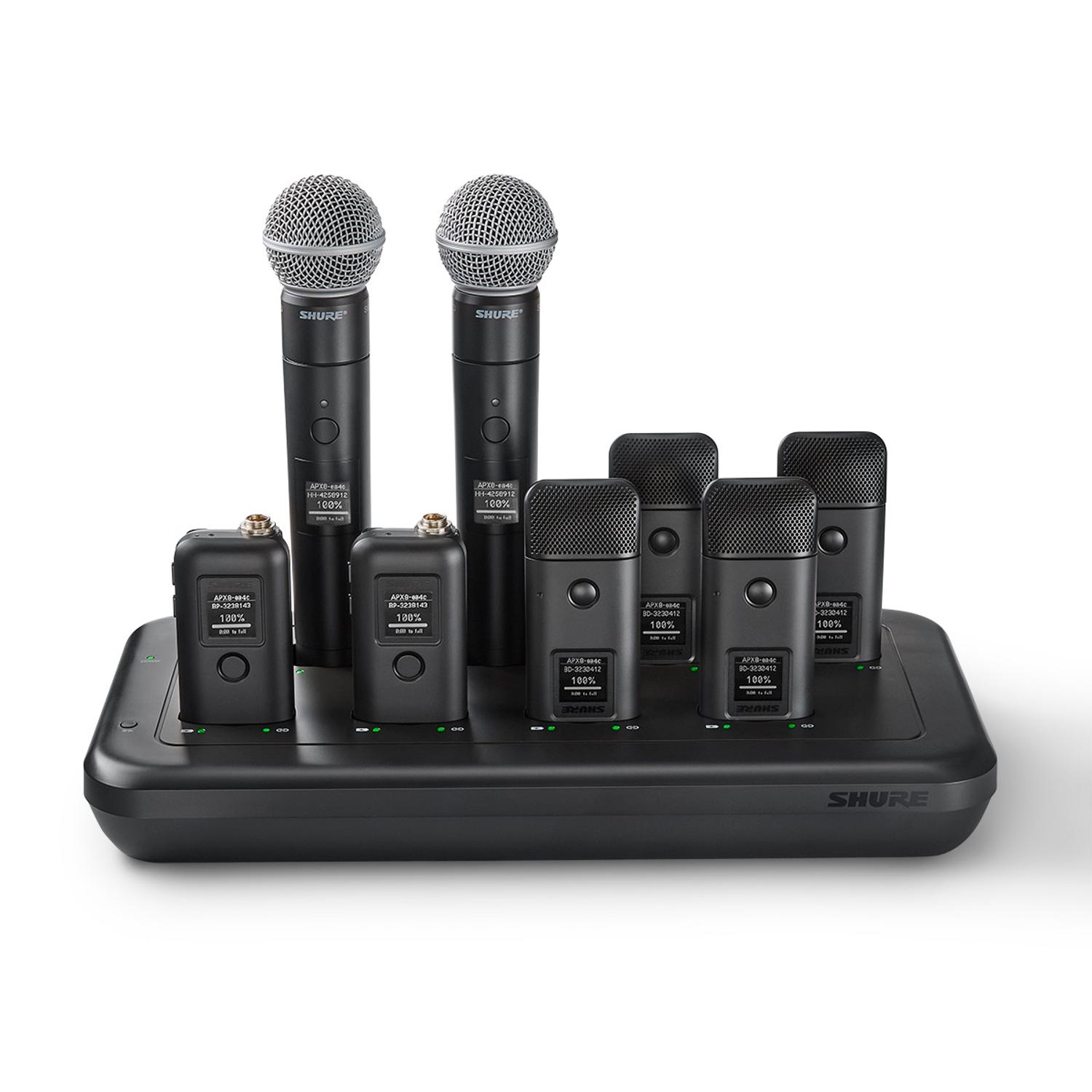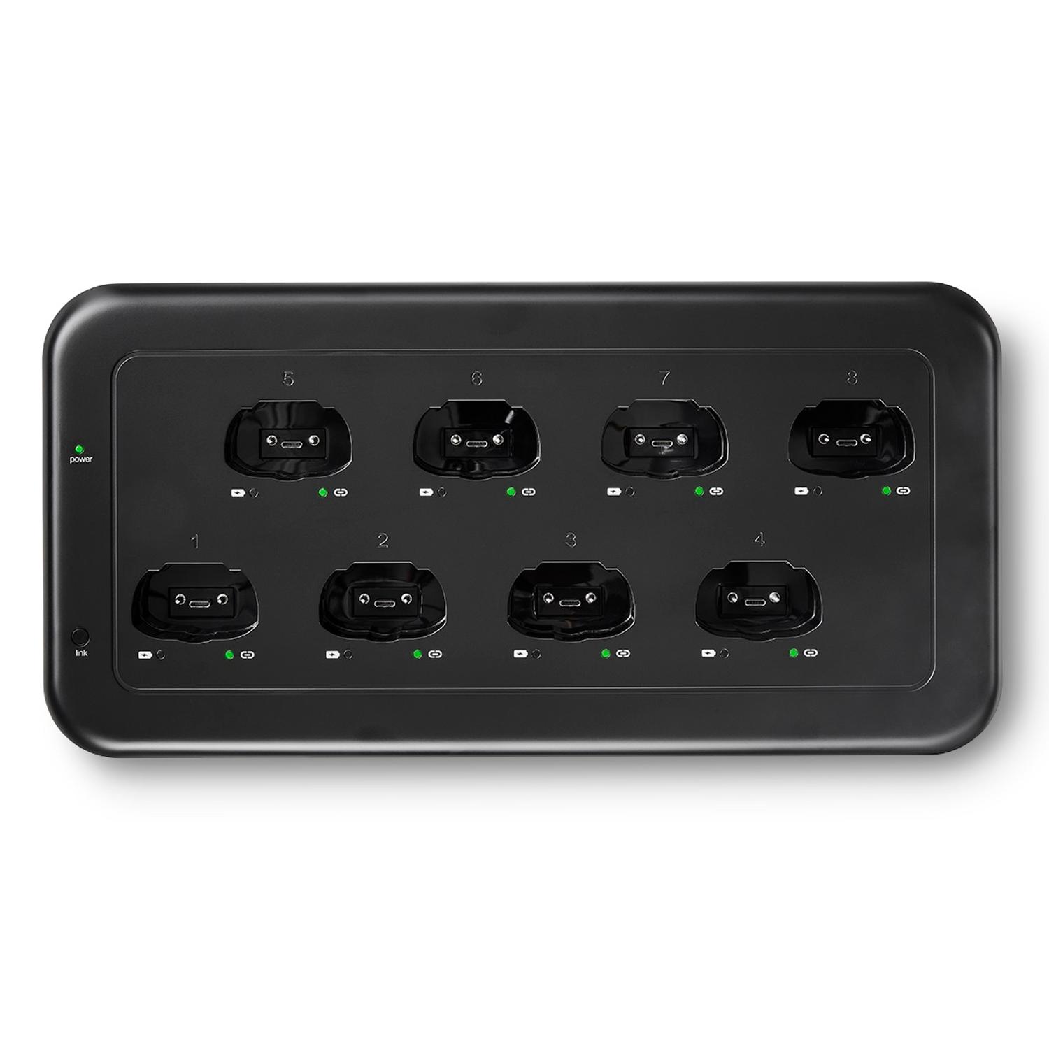 Networked Docking Stations that can charge 4 or 8 MXW neXt transmitters without removing the battery. Compatible with MXW neXt bodypack, handheld, and boundary transmitters.