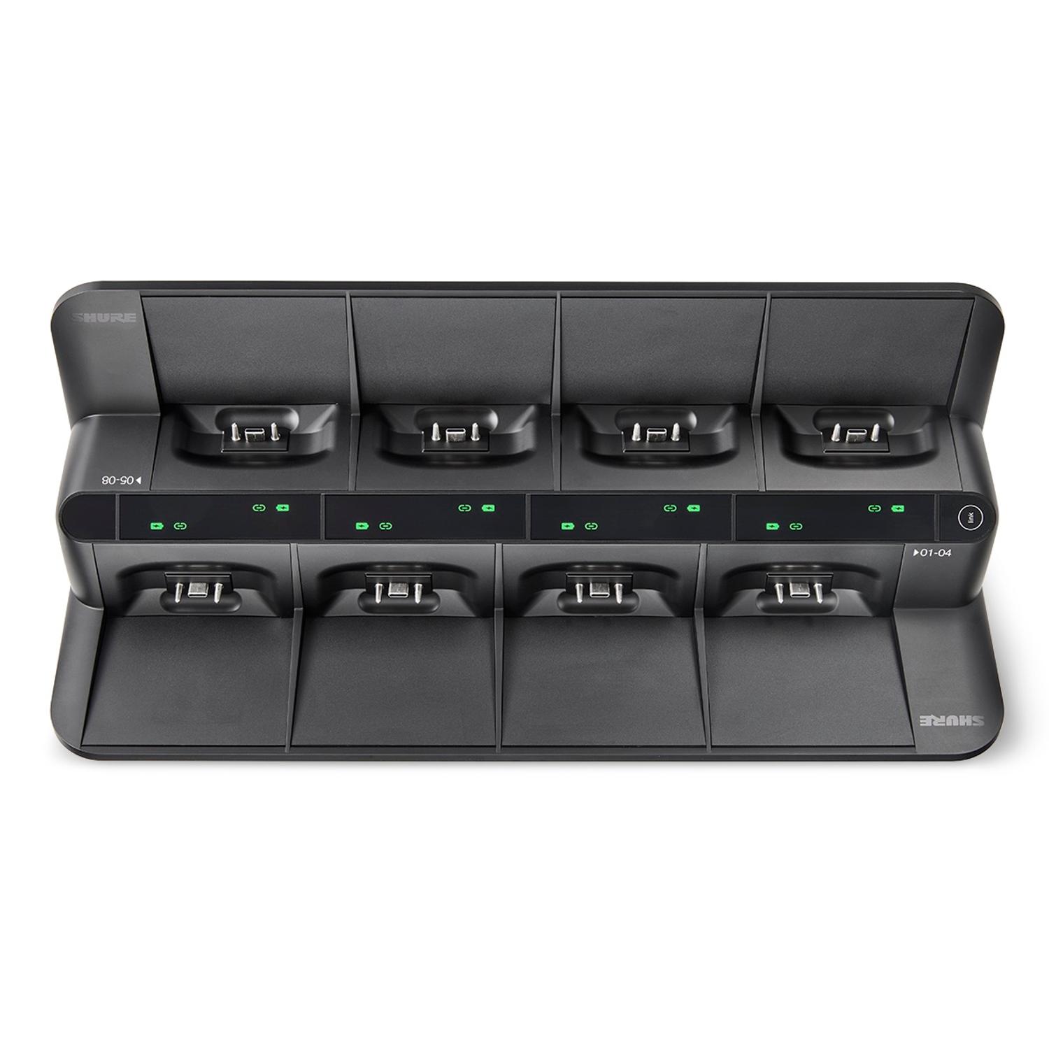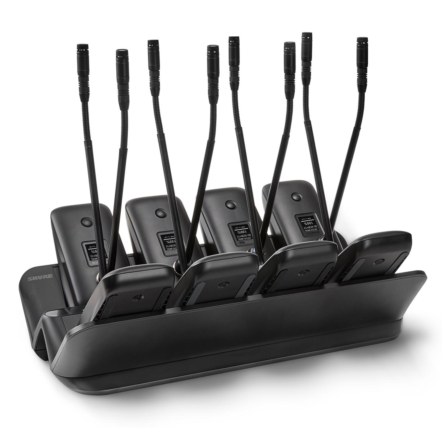 Pressing the Link button while the transmitter is in the charger Using the linking workflow in the Control User Interface (CUI) Battery statistics can be shared with networked control software. The charging station automatically checks battery health, including: Number of lifetime charge/discharge cycles Integration with additional MXW neXt hardware and Shure Designer software enables: Monitoring Control tailored to specific applications Read more