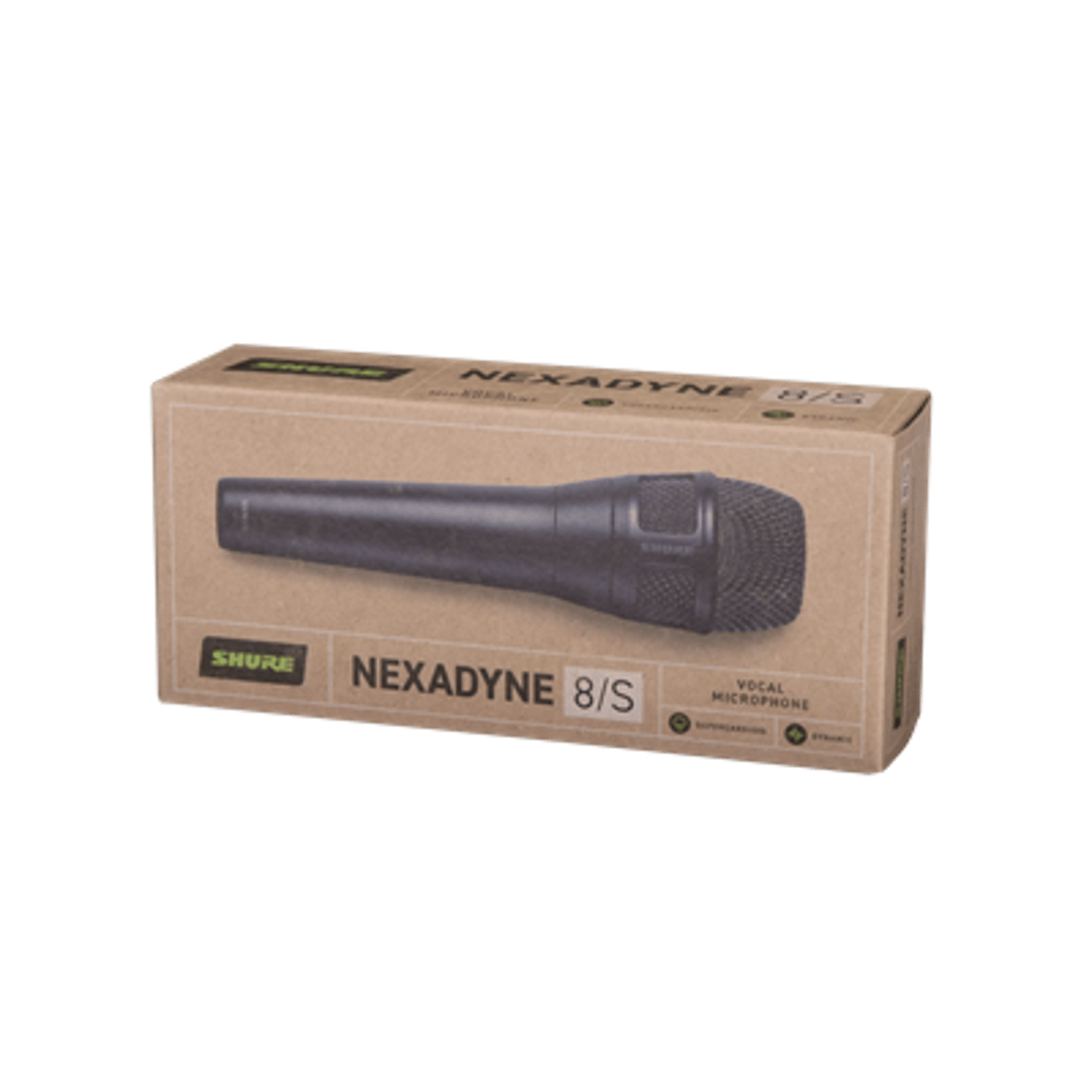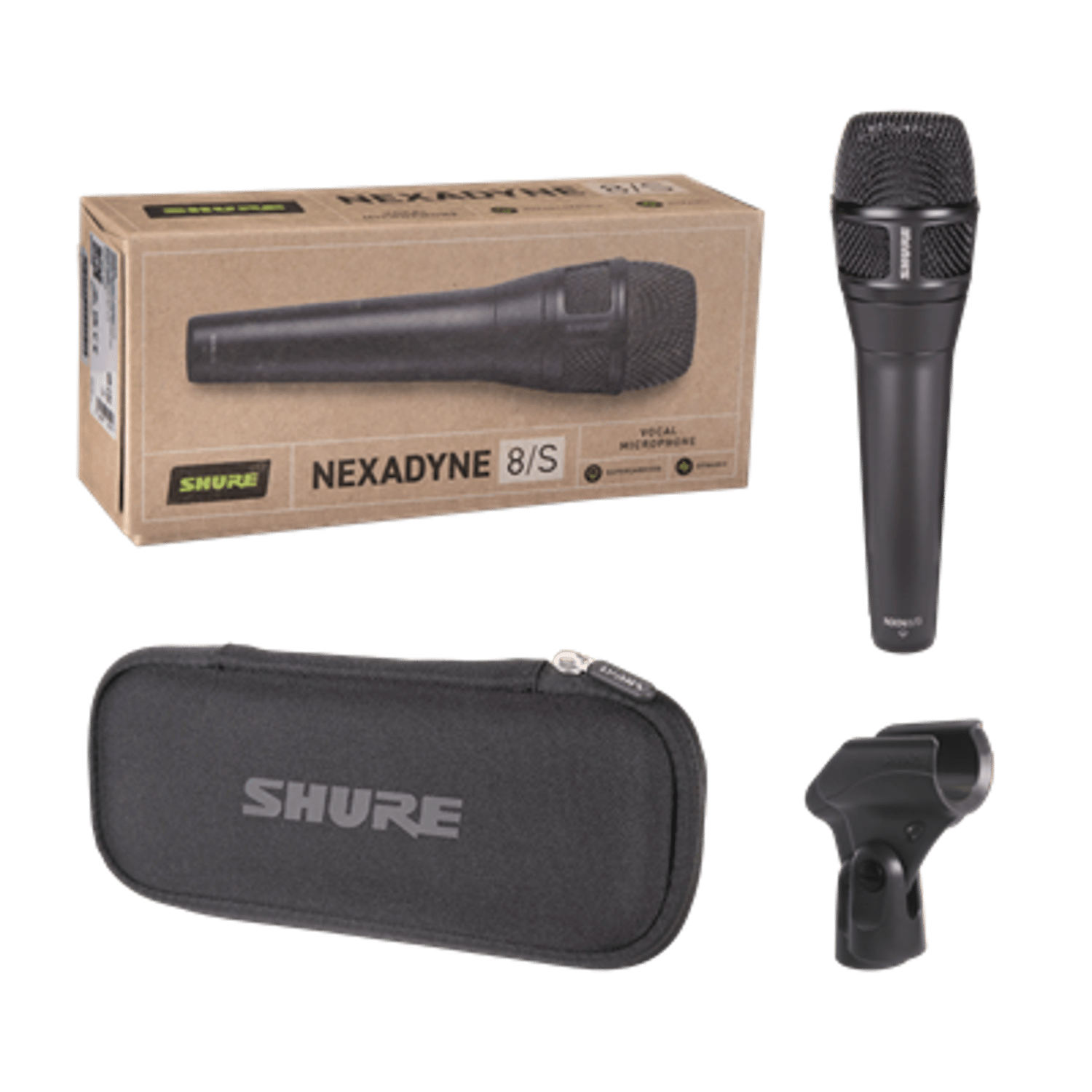 The Nexadyne™ 8/S Dynamic Vocal Microphone is a cardioid dynamic microphone for professional vocal performance. Nexadyne Vocal Microphones feature patented Shure Revonic™ dual-engine transducer technology, with two precisely calibrated transducers working together to achieve optimal performance. The result is a high-performing microphone line that combines state-of-the-art acoustic signal processing, exceptional supercardioid polar pattern linearity, and best-in-class noise reduction. The focused and natural supercardioid polar pattern of the Nexadyne 8/S ensures that vocals cut through to the very last row. The Nexadyne 8/S ships with a discreet black finish and includes mic clip and carrying case.