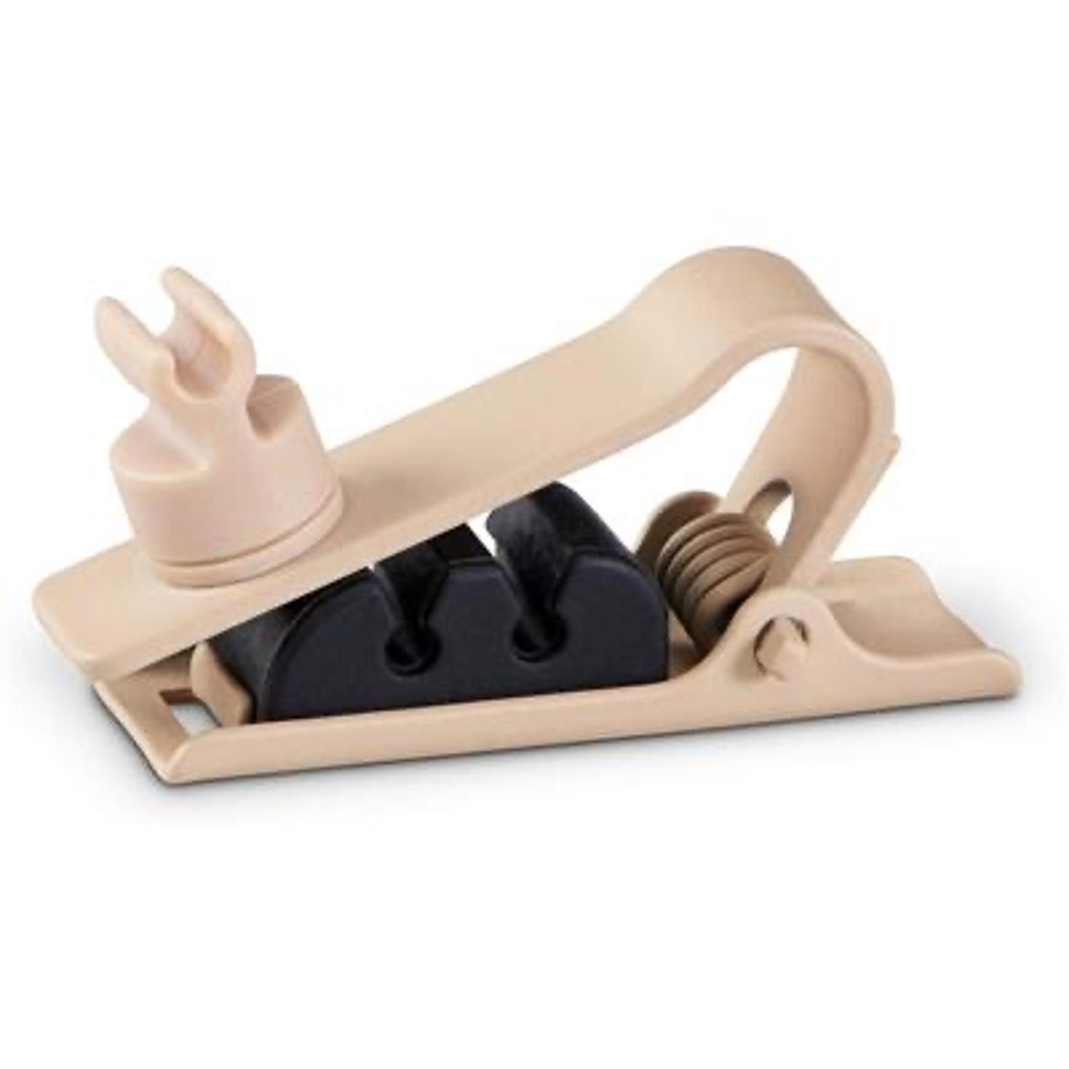 This three-pack of tan Shure Single-Mic Lapel Clips for DL4 DuraPlex Lavalier Microphone enables you to secure a single DL4 lav mic to clothing without piercing any fabric or clothing material—helping you to attach the mic quickly and avoiding damage to costumes and clothing.