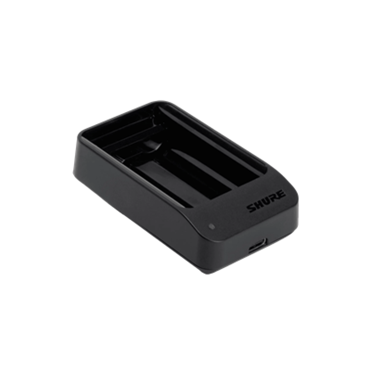 USB single battery charger can be powered from A/C power sources and USB ports to charge one Shure SB903 Lithium-Ion Rechargeable Battery for use with SLX-D Digital Wireless Transmitters.