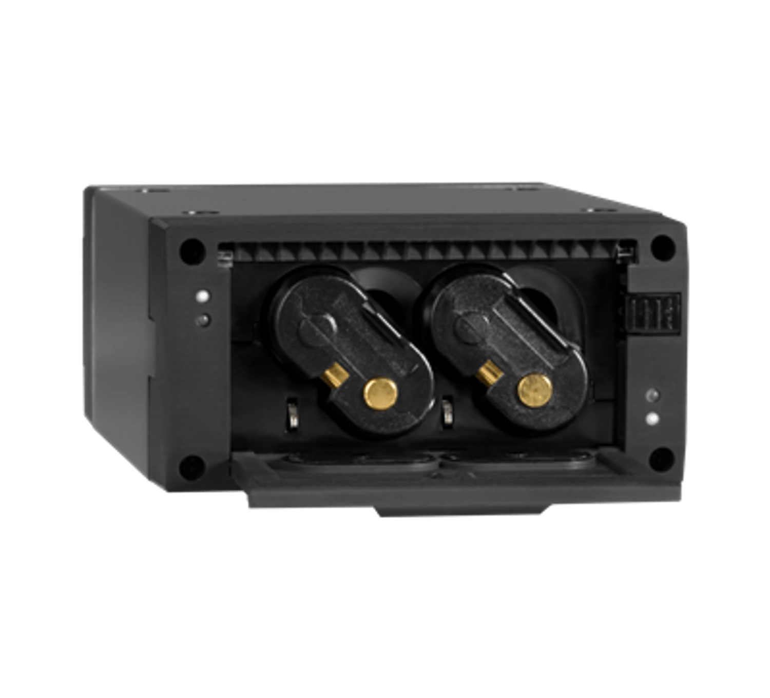 Portable Battery Charging Station. Charges two sb900b rechargeable Li-Ion battery packs in a convenient and compact desktop unit.