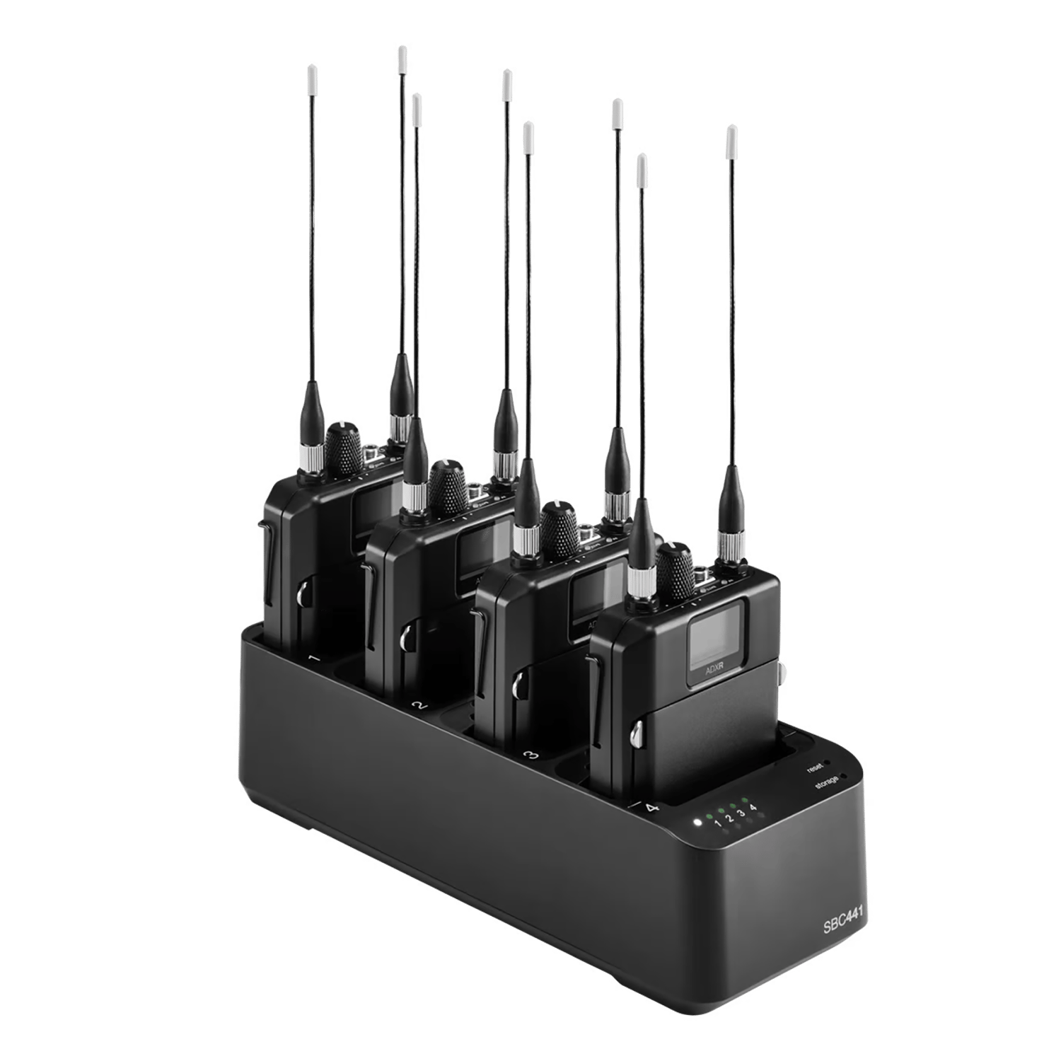 The SBC441 4-Bay Docking Charger supports up to four Axient Digital ADXR Wireless Bodypack Receivers or Shure SB910 rechargeable batteries. The SBC441 includes dual network ports for monitoring and network pass-through. Compatible with both Shure SB910 rechargeable batteries and Axient Digital PSM ADXR bodypack receivers, the SBC441 desktop networked charger is a great addition to your Shure Axient Digital PSM wireless in-ear system.