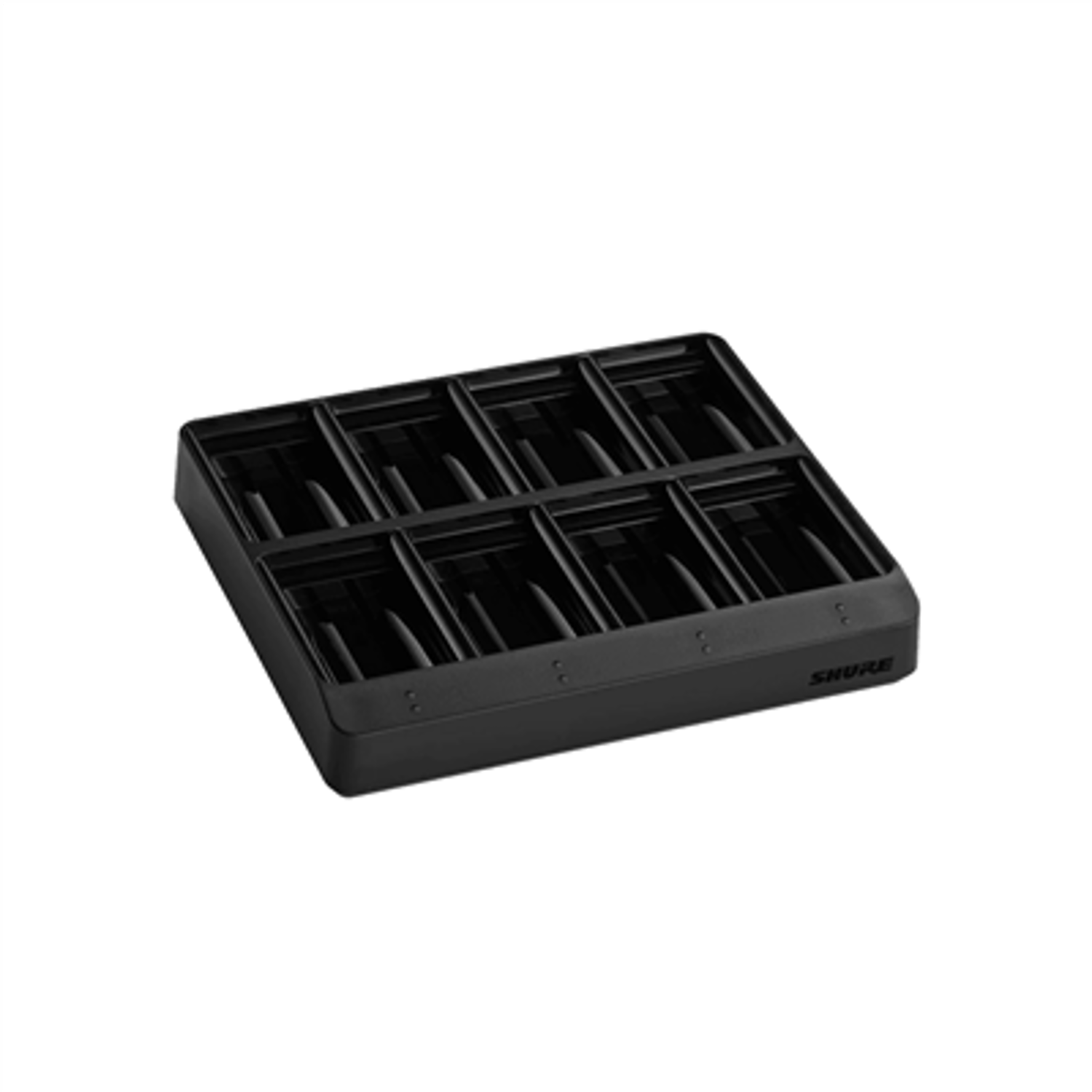 The SBC80-903 is an 8-bay charging station for up to eight (8) SB903 rechargeable lithium ion batteries. The charging cradle is designed to fit in a rackmount drawer and provides a full charge for installed batteries in 3 hours. LED indicators illuminate to indicate battery health and charging status.