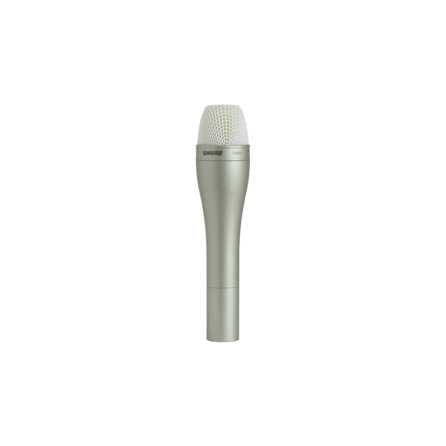 SM63 - Champagne finish, 14.5 cm handle, cable not includedSM63L - Champagne finish, 23 cm extended handle, cable not includedSM63LB - Black finish, 23 cm extended handle, cable not includedRead moreHigh output, low impedance80 to 20,000 Hz frequency response tailored for optimum speech intelligibilityLow-frequency roll off and built-in shock mount for reduced pickup of handling noise and stand vibrationHumbucking coil for virtual immunity to strong electromagnetic hum fieldsExceptionally rugged VERAFLEX grille that resists damage from drops, and is immune to rust, corrosion, and moistureBuilt-in pop filter that suppresses breath and wind noiseAccessory windscreen supplied with SM63L and SM63LB for outdoor use under adverse wind conditionsExcellent balance and feel for hand-held useSupplied snap-in stand adapterSleek, handsome appearance looks good on stage, screen, and television
