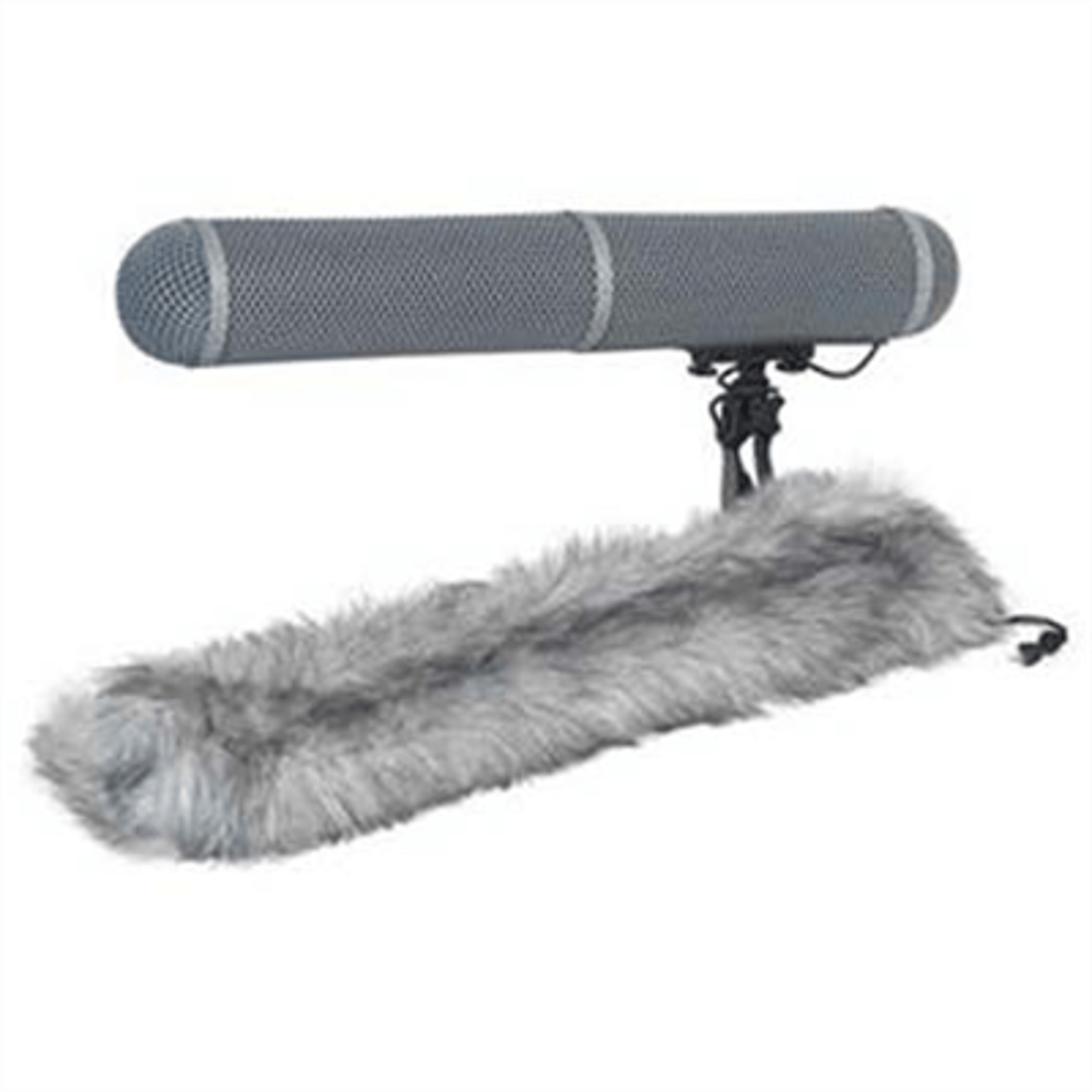 Windshield basket completely surrounds the microphone and its connector, sliding onto the suspension. High-quality synthetic fur windjammer is designed to fit perfectly over the windshield and features a drawstring and toggle for a snug fit. Windshield and windjammer attenuate up to 38 dB of wind noise.Read more