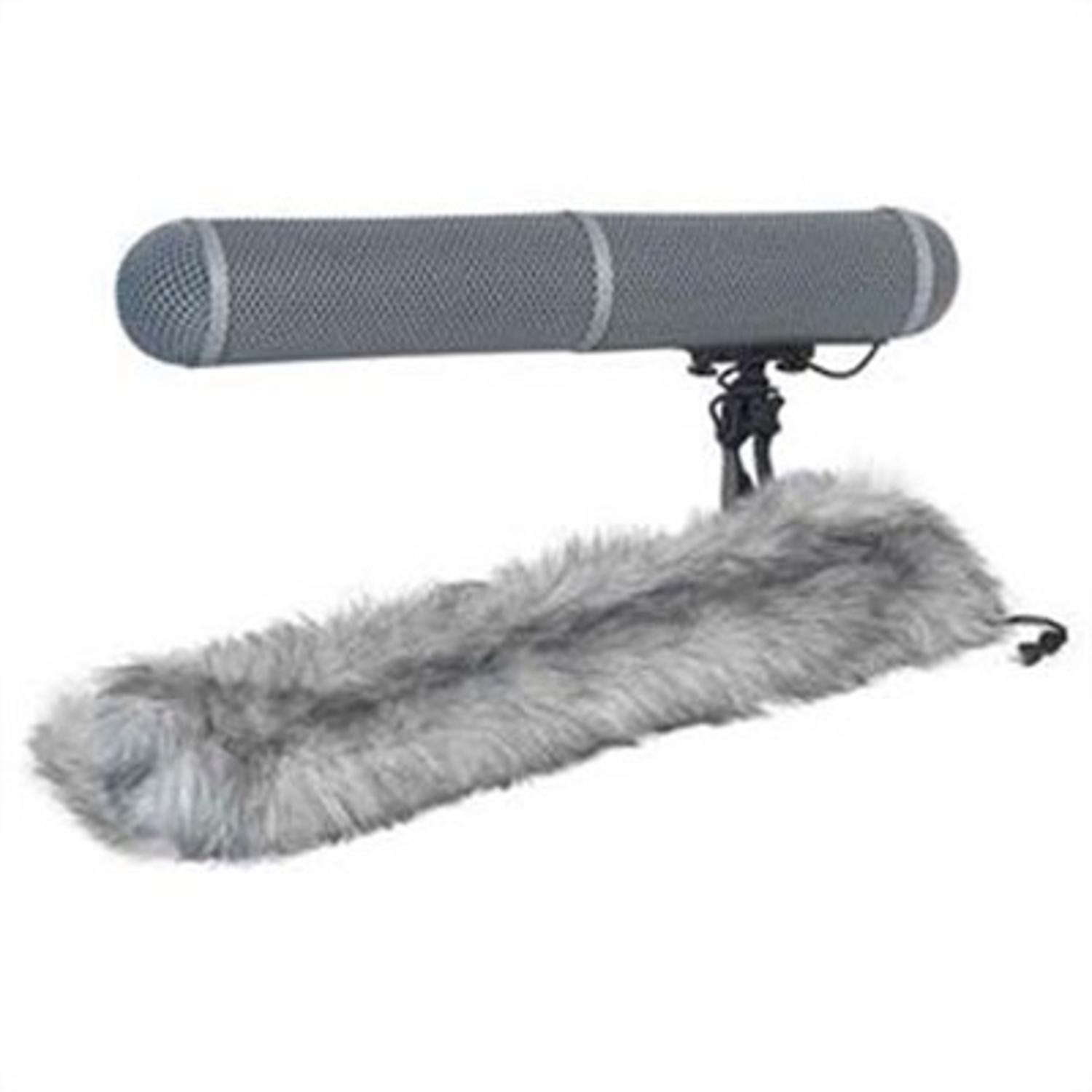 Windshield basket completely surrounds the microphone and its connector, sliding onto the suspension. High-quality synthetic fur windjammer is designed to fit perfectly over the windshield and features a drawstring and toggle for a snug fit. Windshield and windjammer attenuate up to 38 dB of wind noise. Read more