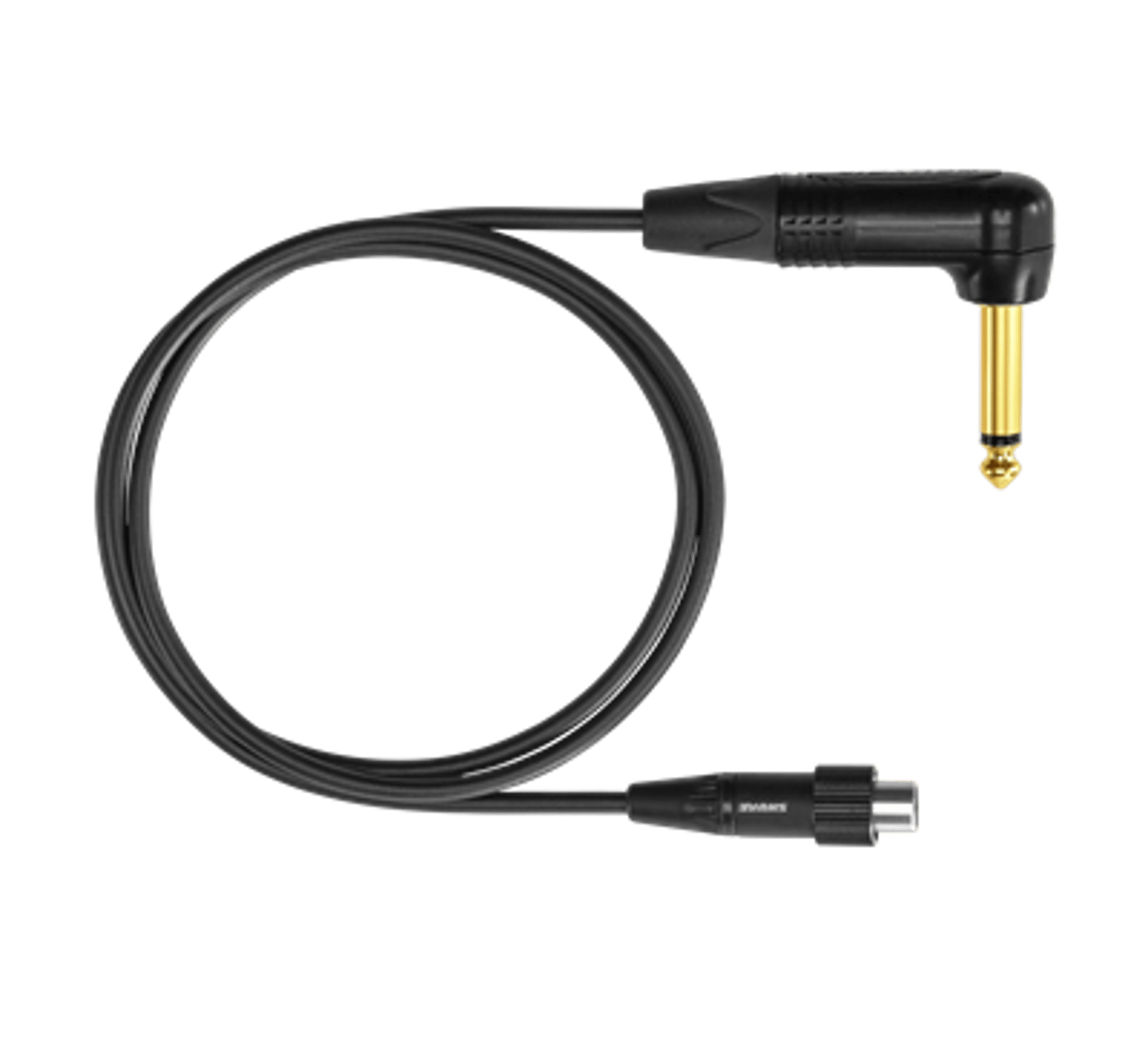 Connects Bodypack Transmitters to a guitar, bass or other electric instrument. 3.0’ (0.9 m) rubber-coated instrument cable reduces handling noise and provides road-worthy durability. Premium right-angle ¼” (6.3 mm) gold-plated Neutrik connector offer unmatched fidelity and corrosion-free performance. Threaded-collar locking REAN TA4F connector securely connects your bodypack for unintterupted signal.