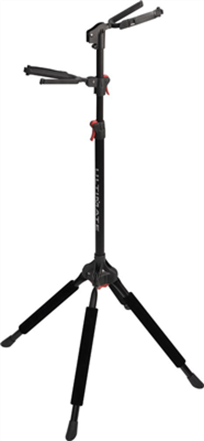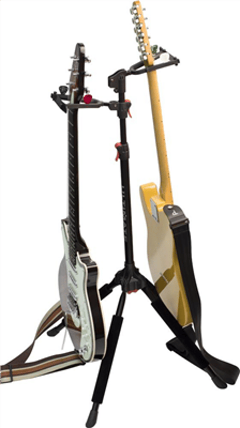 Genesis® Series Double-Hanging Guitar Stand with Locking Legs and Height Adjustable Yokes