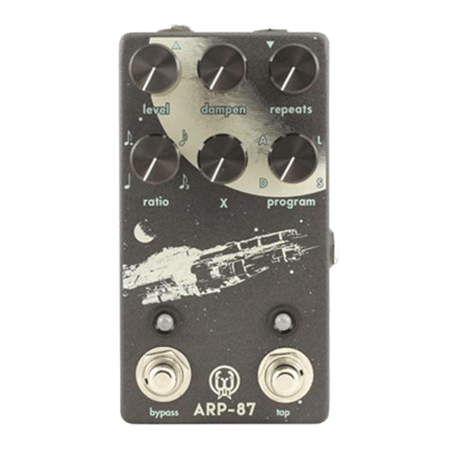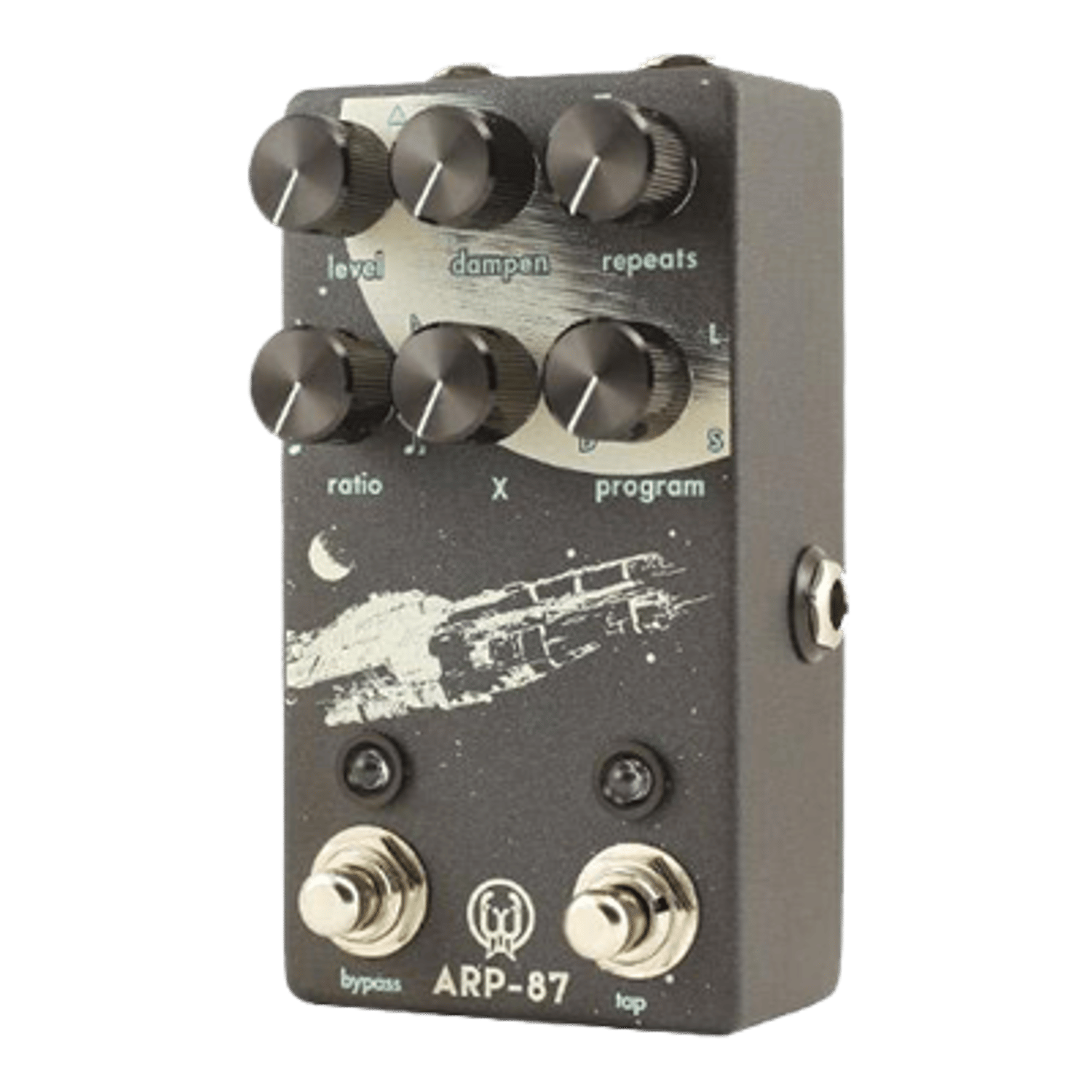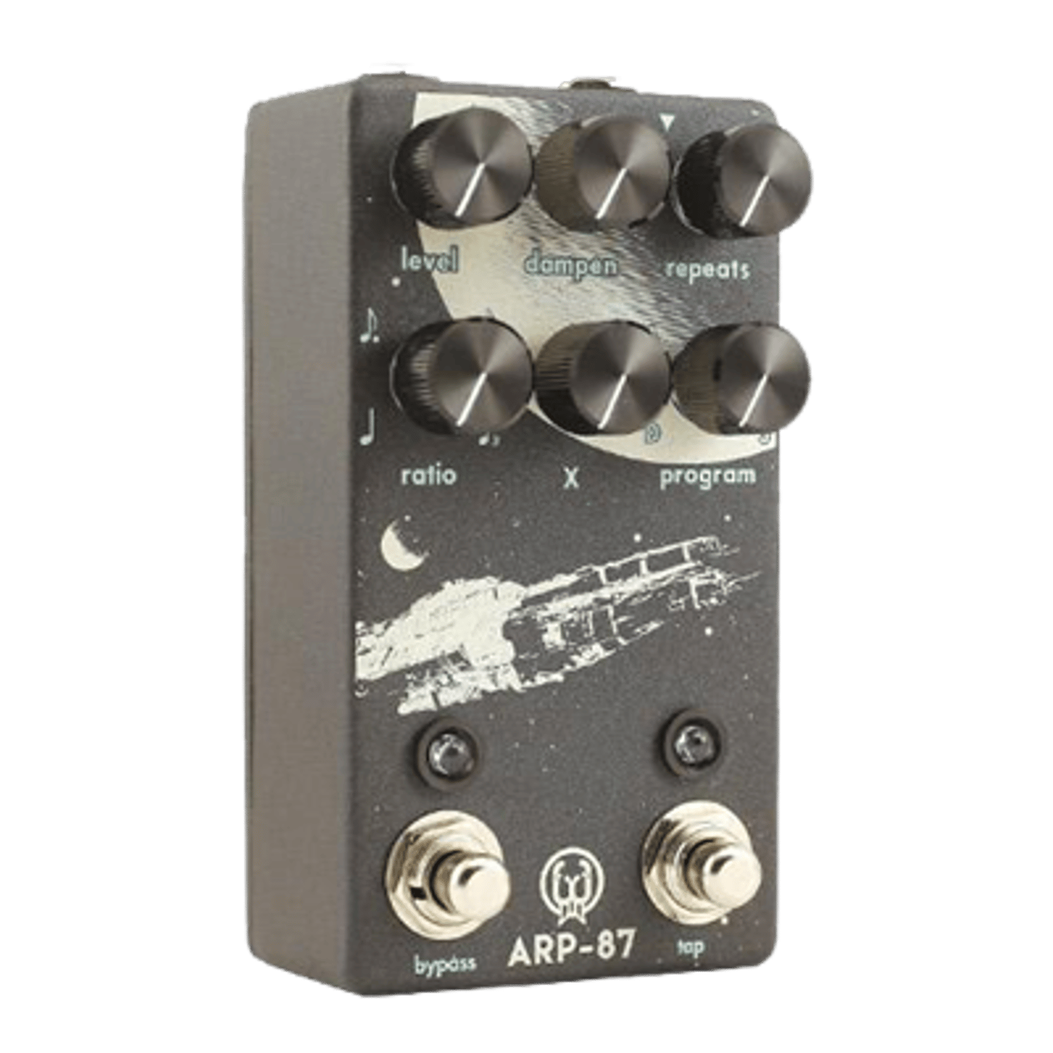 The ARP-87 is a compact, feature-rich delay, packed with a large pallet of inspirational delay tones. Featuring four main algorithms, digital, analog, lo-fi, and slap back, the ARP-87 can cover some serious ground in the world of echoes. The Digital algorithm boasts pristine, crystal clear repeats great for rhythmic riffs. The Analog setting works well to add warmth and dimension to chords and lines without getting in the way. The Lo-Fi algorithm, with its adjustable frequency range on the repeats, goes from warm, warped, and murky, to strait AM radio. Finally, the Slap setting makes it easy to dial in a great slap back echo perfect for smoking chicken pickin’ runs.