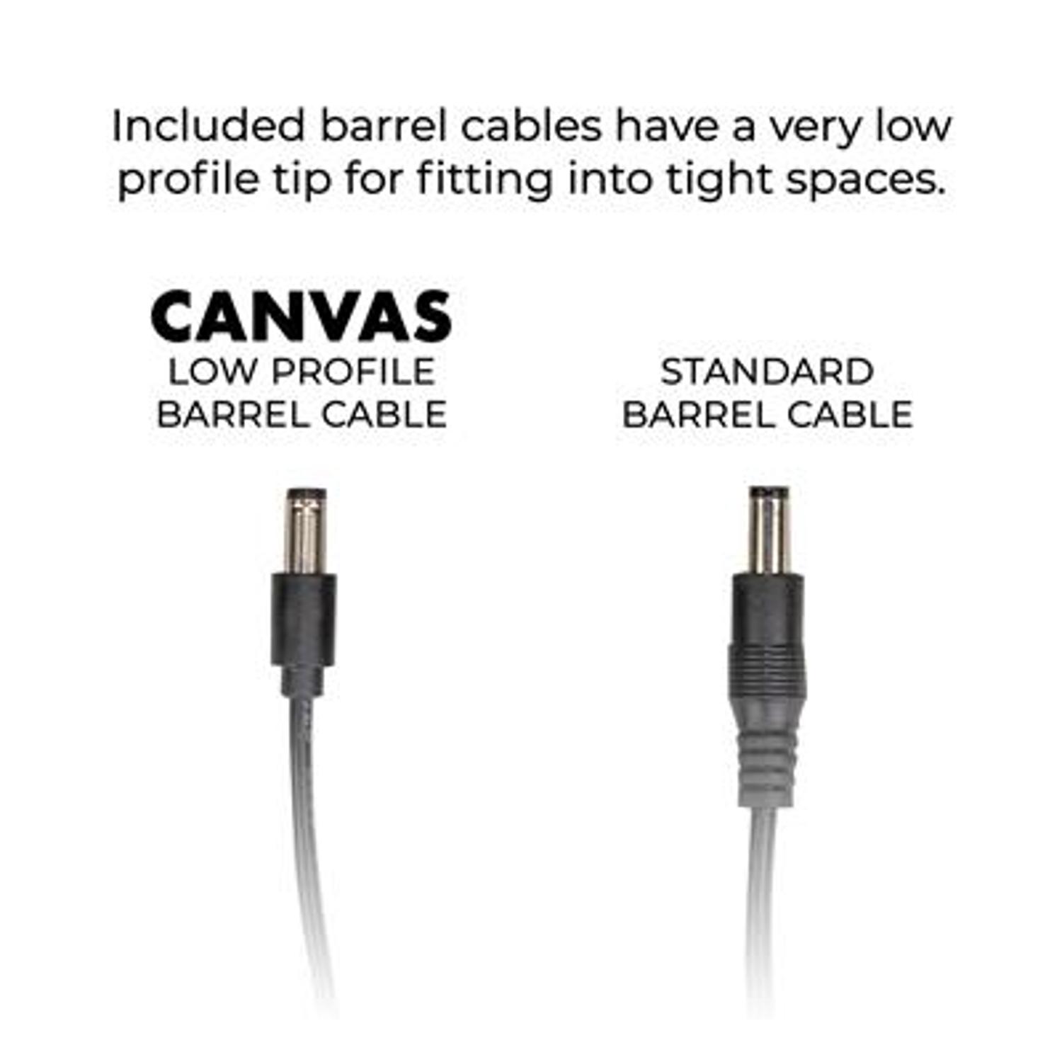 Canvas Power is a modular, linkable ecosystem to power your pedalboard Includes external power supply unit: 4 Ampere, 96 Watts 15 isolated outputs All outputs provide 500mA 2 ports with variable output of 9, 12, or 18 Volts Ultra slim profile fits under most boards Clean, quiet, isolated power Enough right angle to straight “barrel to barrel” cables to supply power from every output to a pedal Included barrel cables have a very low profile tip for fitting into tight spaces 24V in and 24V Thru to connect to “Canvas Power Link” models to grow with your pedal collection LED Power Meter: 100%, 50%, 30%, 10% status indicator USB C port to power accessories or charge phone/tablets Includes mounting brackets to mount to elevated boards like Pedal Train and similar style boards Dimensions: 31.1 x 5.4 x 2.54 cm Weight: 0.95 kg (incl. external power supply unit) Made in the USA