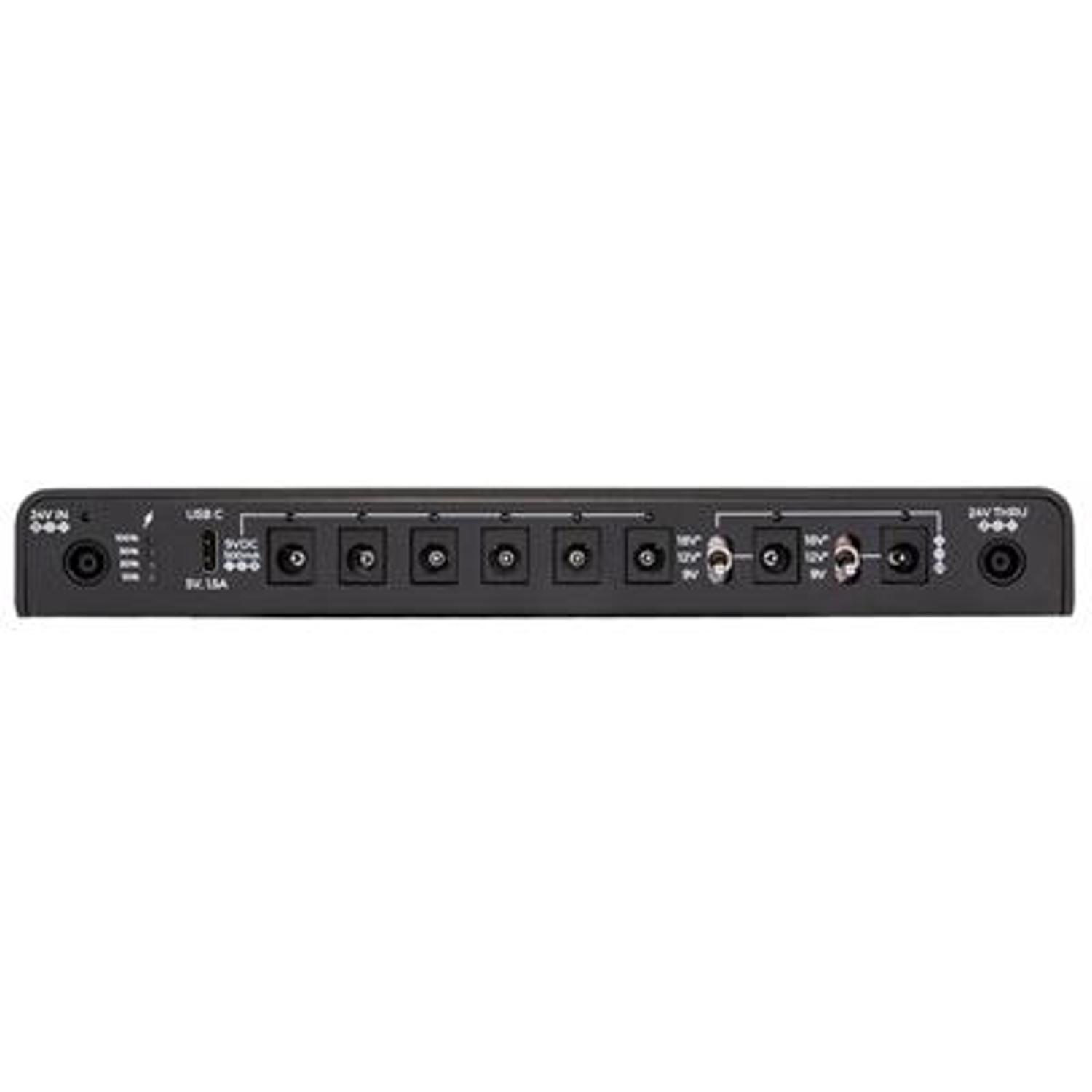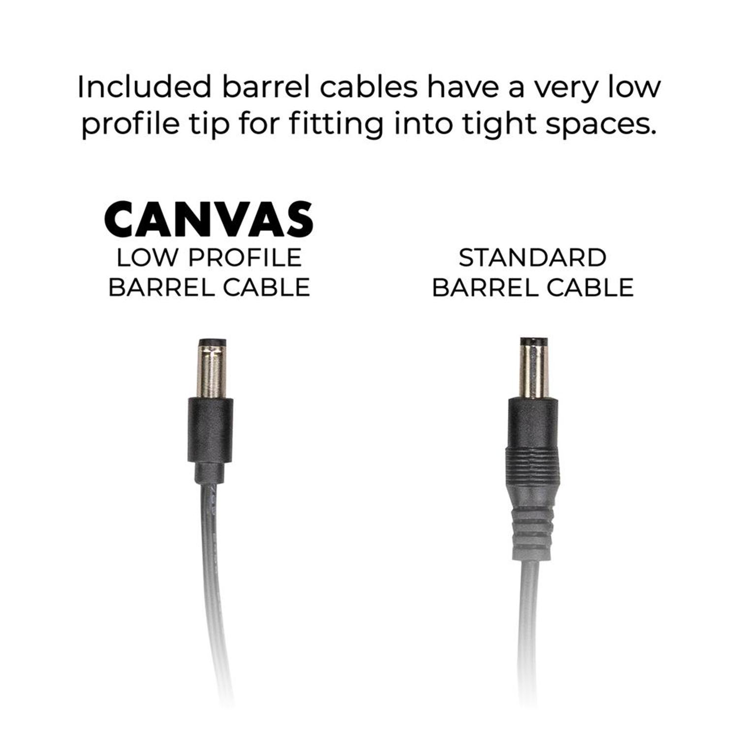 The Canvas Power 8 has 8 isolated power outputs that provide up to 500mA of "clean" current at 9v.Two of the outputs have variable voltage, allowing you to switch between 9v, 12v and 18vto power high-voltage pedals. It also has a USB C port for poweringdevices such as your phone or tablet while you play.