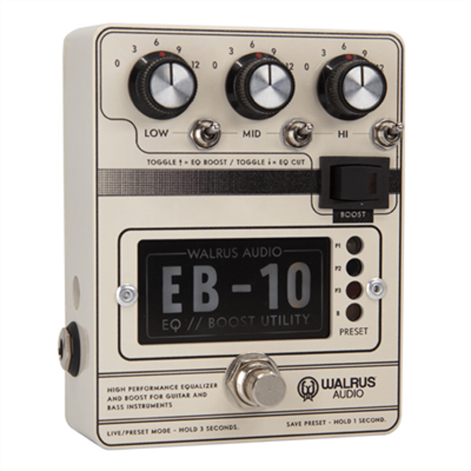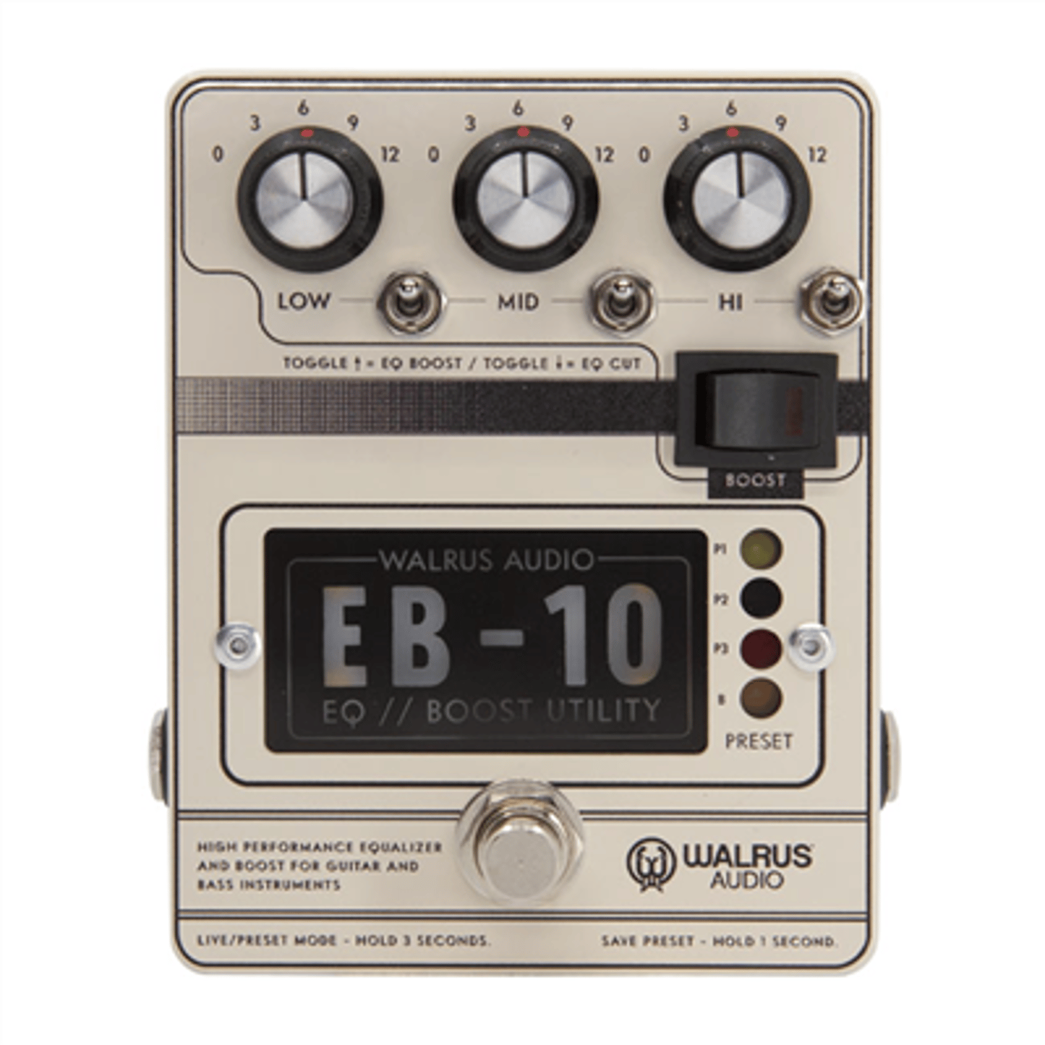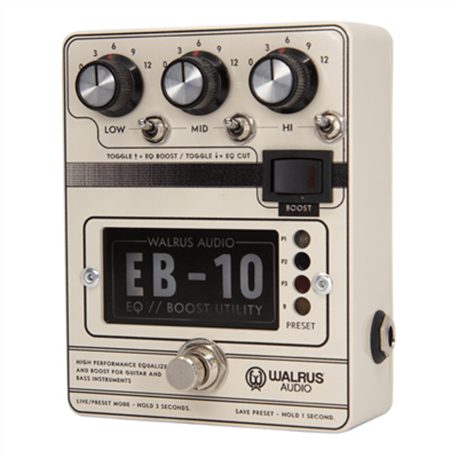 When the Boost switch is engaged, add a 10dB MOSFET boost for some great extra punch. Use the EB-10 to compensate when switching between low and high output instruments. Push through the mix during solos, or even use the onboard presets as three different gain stages by using combinations of increasing boosted EQ settings and the Boost switch!
