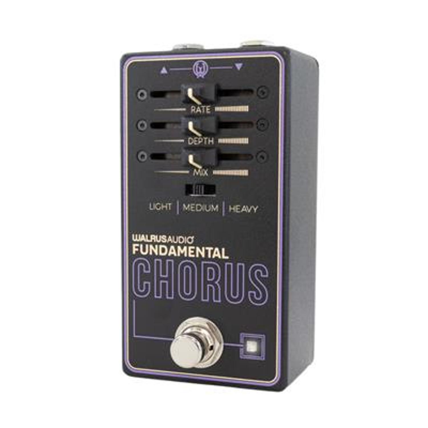 Light: Emulates a traditional analog chorus with warm, lush, and organic tones.Medium: Adds multiple taps to further modulate a classic chorus.Heavy: Emulates a classic 80s effect, the LCR tri-chorus, which is known for its rich and complex modulated sound.For the Fundamental Series, the team at Walrus Audio challenged themselves to design a set of pedals with the tonal integrity that’s required to live on a professional’s pedalboard, but with simplified controls friendly enough for even the newest effect pedal users. Each Fundamental pedal has three sliders for tweaking the sound and a three-way switch for changing pedal modes. The result is a line of pedals that will keep you covered from your first band practice all the way to a sold-out arena. Designed and assembled at Walrus Audio headquarters in Oklahoma City, USA.