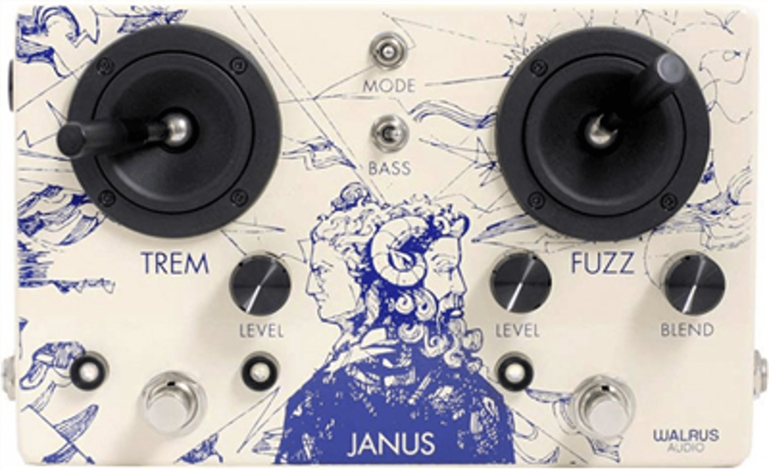 The Tremolo joystick controls the rate and depth while the Fuzz joystick controls the amount of fuzz and the tone. There are individual Volume controls for both effects and a Blend control for the Fuzz that allows the user to mix unaffected signal with the effected fuzz signal. The joystick controls make the Janus a great option for guitars, vocals, keys, or tracks.